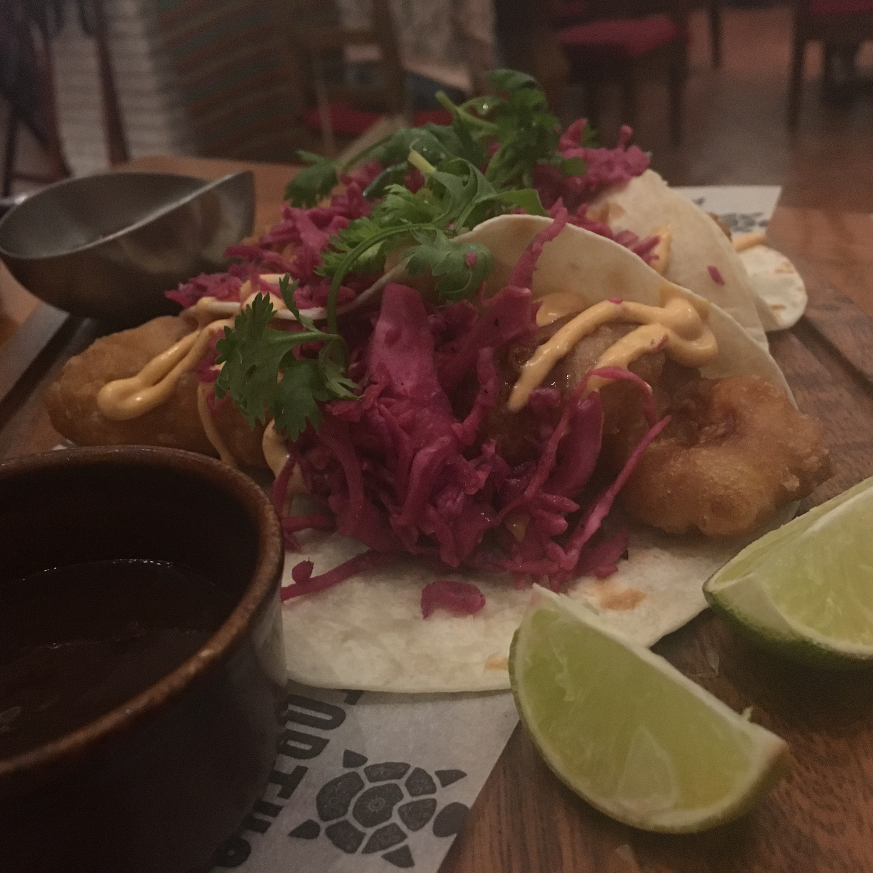 Can you see the crunch in these Cancun shrimp tacos at Tortuga Mexican Kitchen?