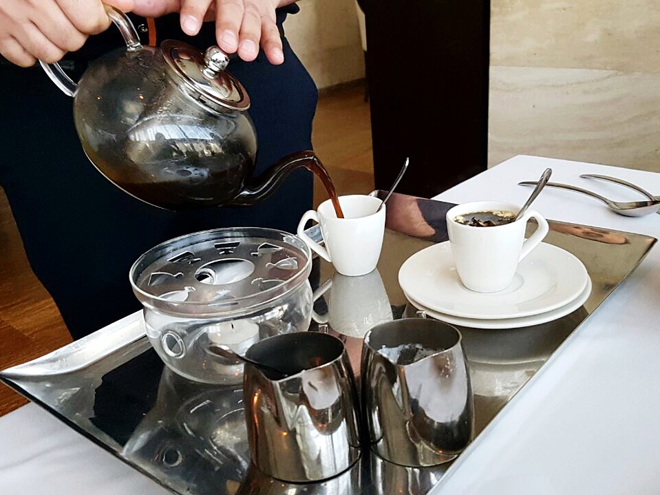 Jalebi, mmmm… Although neither me, nor my guest are big fans of this dessert, the sheer presentation and quality of ingredients that go into making a dessert what it truly deserves at Trèsind got us converted into Jalebi eaters. Very aptly titled Traditional Jalebi (per 100 gm), this dessert is actually presented on a weighing scale with weights on one side and jalebi on a thin butter paper on the other. So classic!