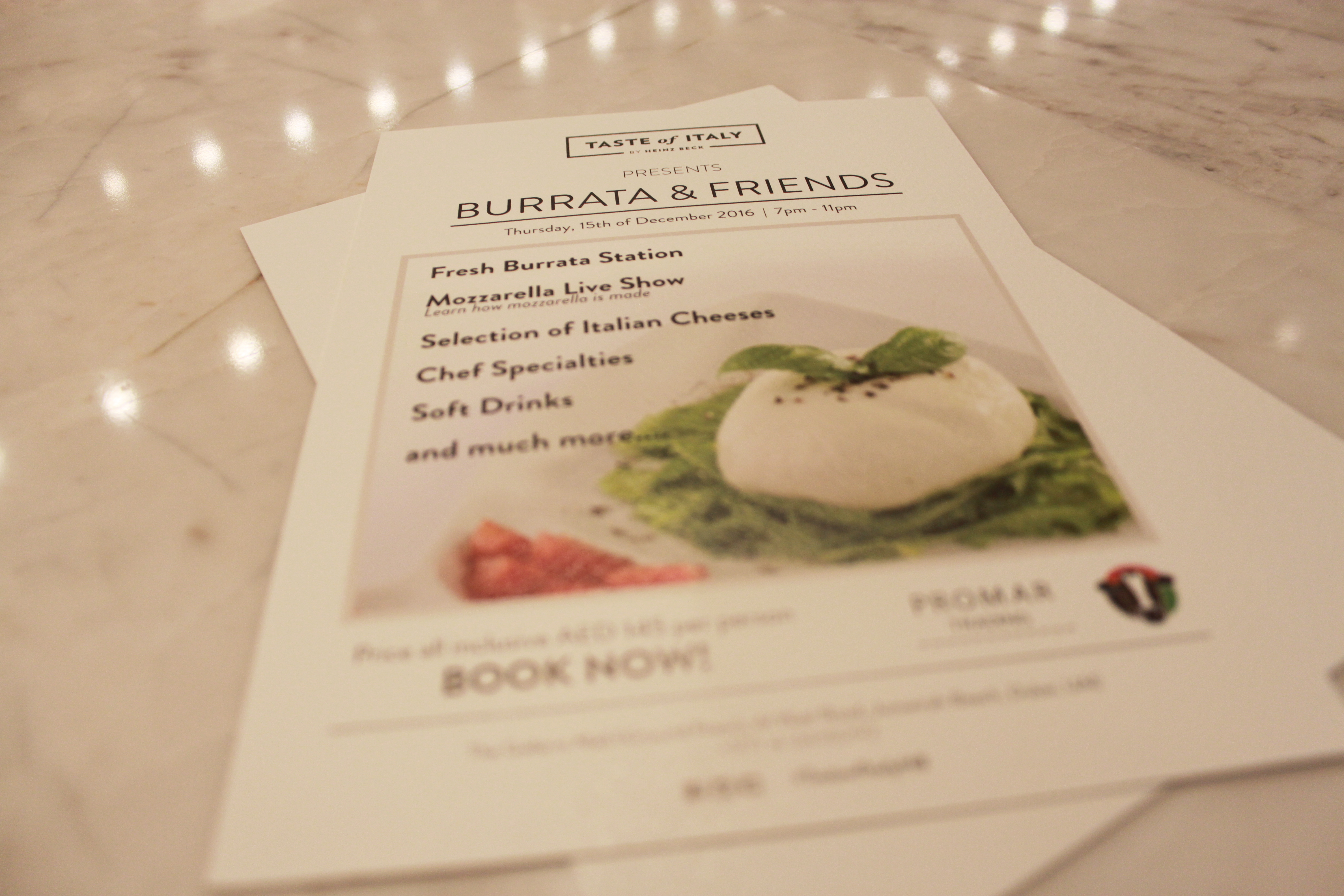 This event, held on Thursday, Dec 15th in the restaurant in Galleria Mall, was undoubtedly, the cheesiest night in town. By cheesy I mean, it involved sampling some of the freshest Burrata and mozzarella along with a selection of different gourmand cheese.