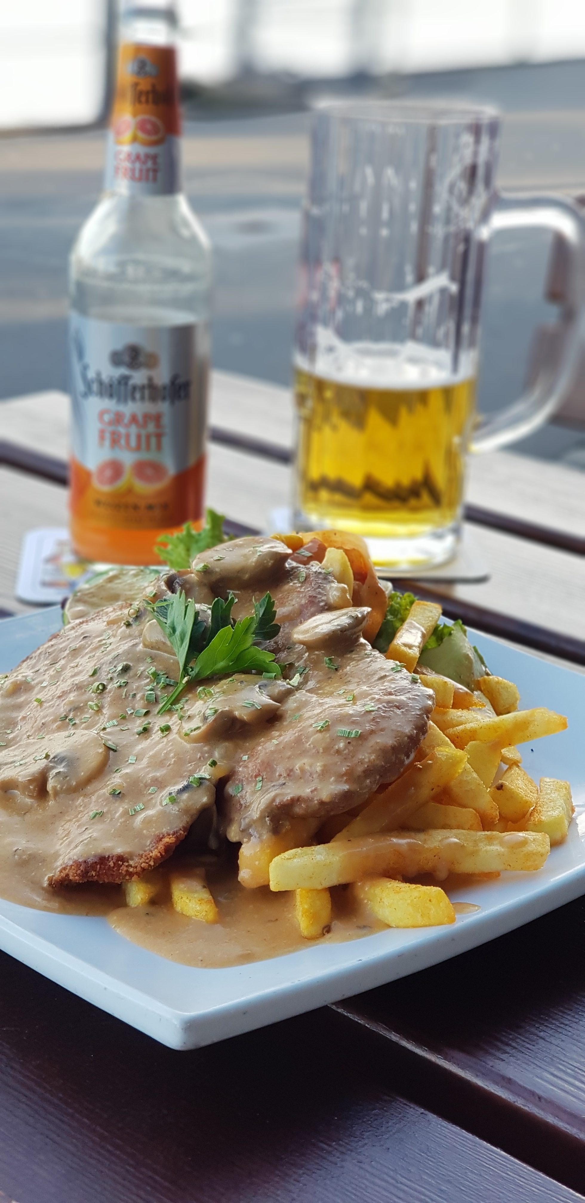 I had this at the Liman Da restaurant which is one of the many eateries located on the boardwalk along Main River in Frankfurt. They had a choice of three schnitzels that all come with pommes frites (fries) and a side salad. I chose the one with champignon cream sauce and the mushroomy goodness combined with the juicy chicken was simply delicious. That sauce alone deserves an applause. Don’t miss out on trying the schnitzel when you’re in Germany. While their signature German beer makes a great accompaniment, I had mine with a grapefruit infused brew.