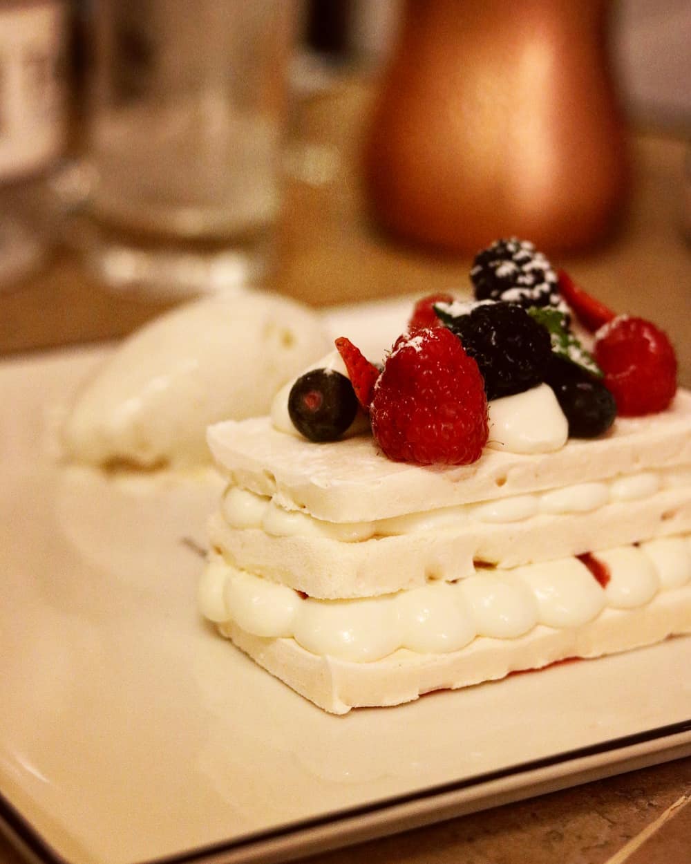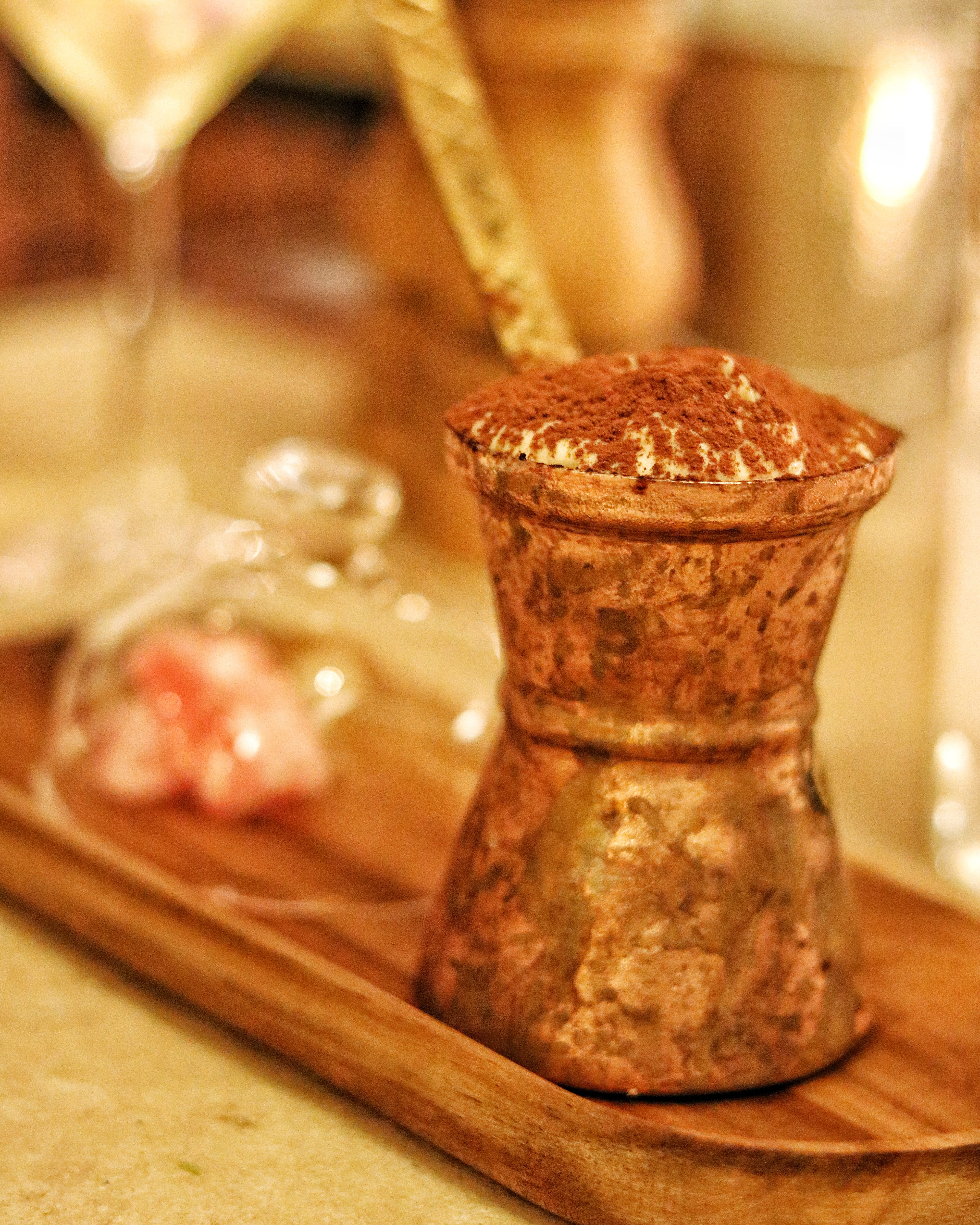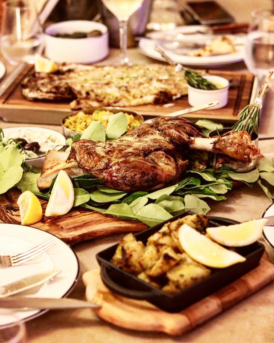 We started with a selection of cold plates that included different Greek dips served alongside pita bread. For salads, we were offered the Greek special Santorinia salad that came with heirloom tomatoes, fresh Anthotyro cheese, caper leaves, oregano and a drizzle of extra virgin olive oil. I loved the Prawns Kadaifi appetizer. Wrapped in kadaifi filo, these tiger prawns were fried crunchy and served with a strawberry dressing. We also tried a tuna carpaccio for starters. For our main course, we were offered not one, but two hearty mains that were more than sufficient for the four of us. Our fresh catch of the day was a lovely whole seabass grilled to perfection. The meaty main course had a chunky slow roasted lamb shoulder accompanied with sides of oven roasted potatoes, couscous salad and a drizzle of lemon olive oil. I simply love how they used fresh rosemary twigs to bast the oil onto the meat and fish. How Greek! The desserts were a treat. We were asked to sample all three desserts from the opening night menu which started with a creamy orange pie with chocolate mousse and vanilla ice cream. The flavors of Greek coffee added a whole new element to this dish. Next was the classic Pavlova made with Greek yoghurt and served along with strawberry compote, seasonal fruits and yoghurt ice cream. The Greek coffee Tiramisu layered with Loumidis Saoiardi biscuits and mascarpone cheese as a delight. A warm cup of Greek coffee with honey on the side completed our Greek meal and our Taverna experience.