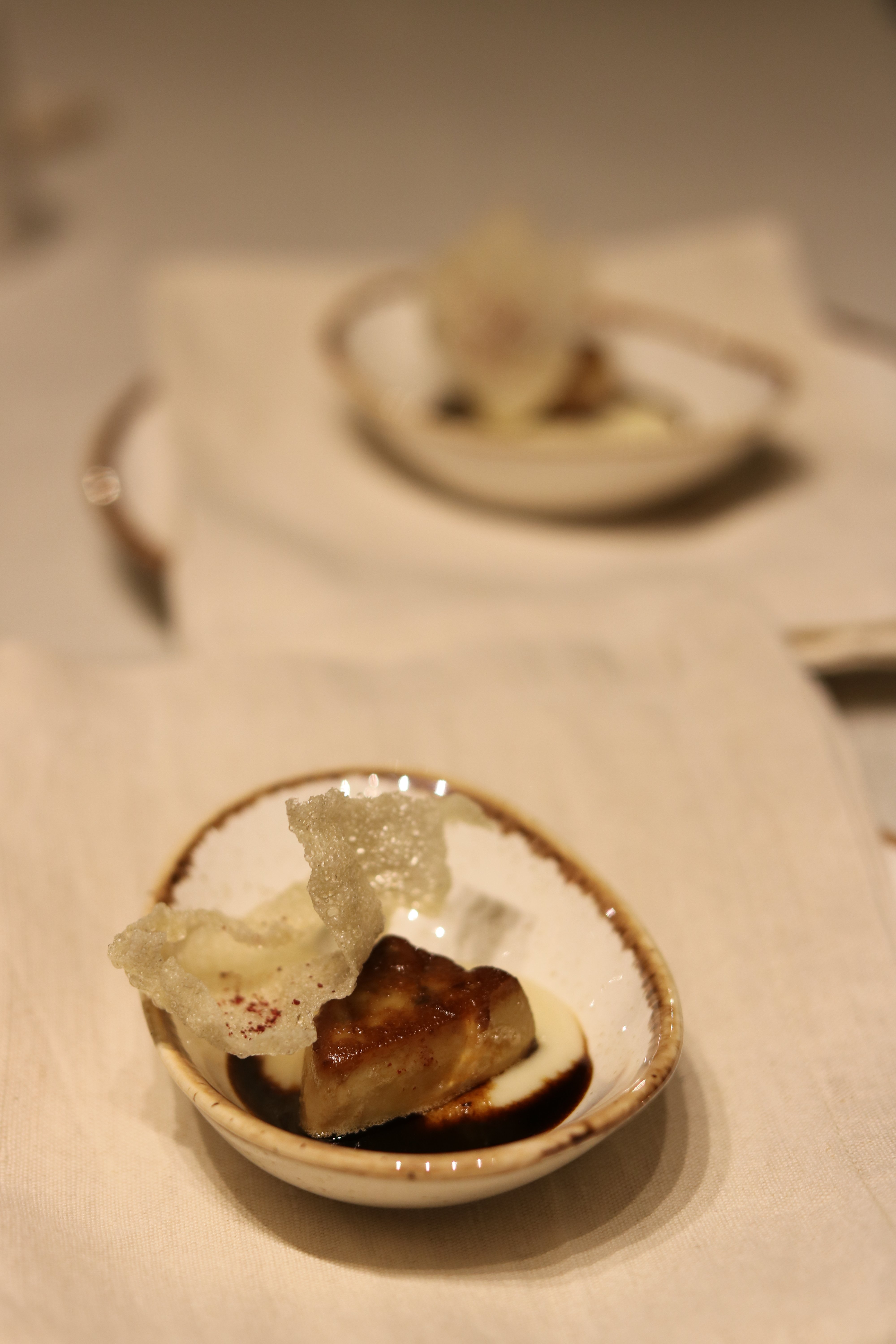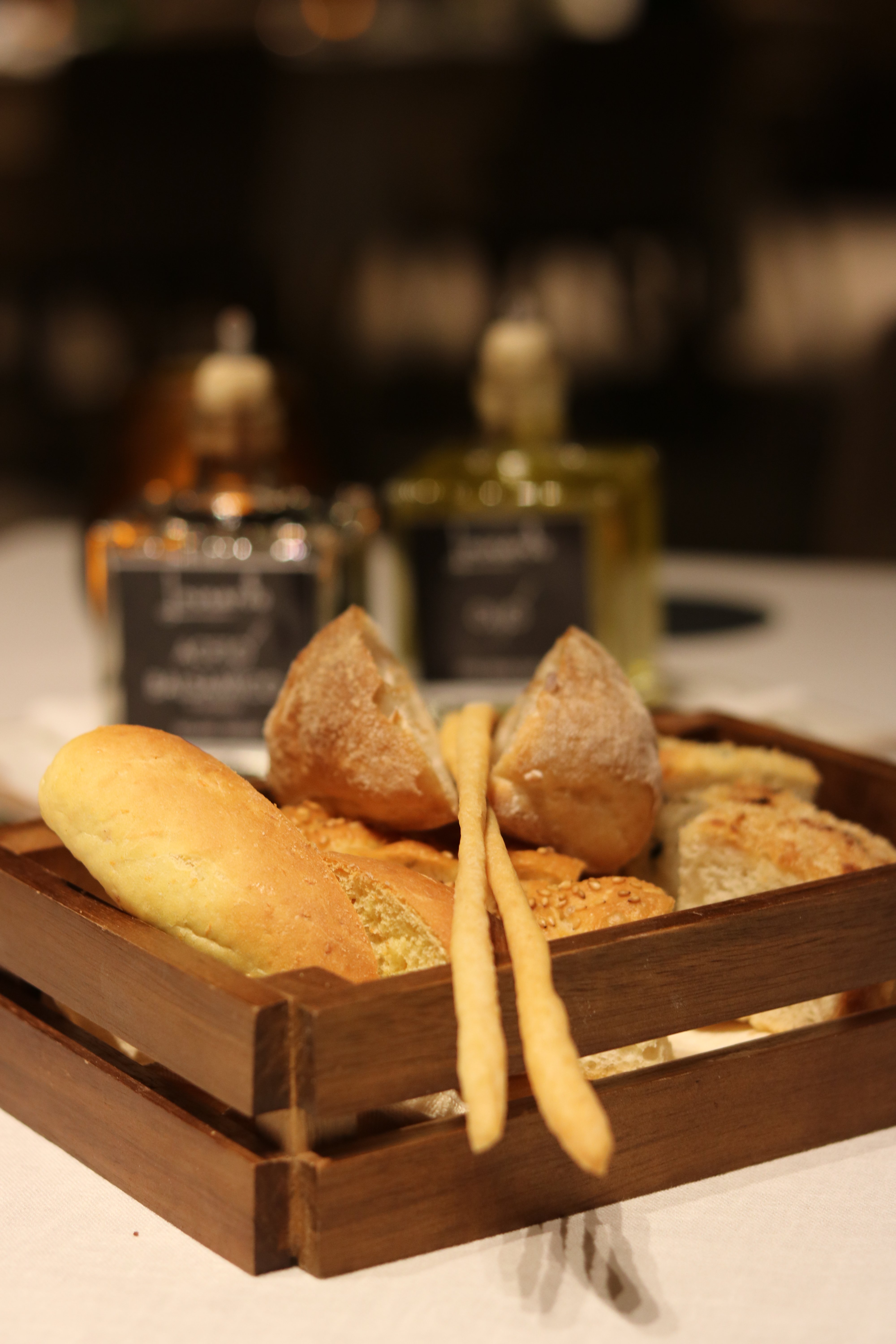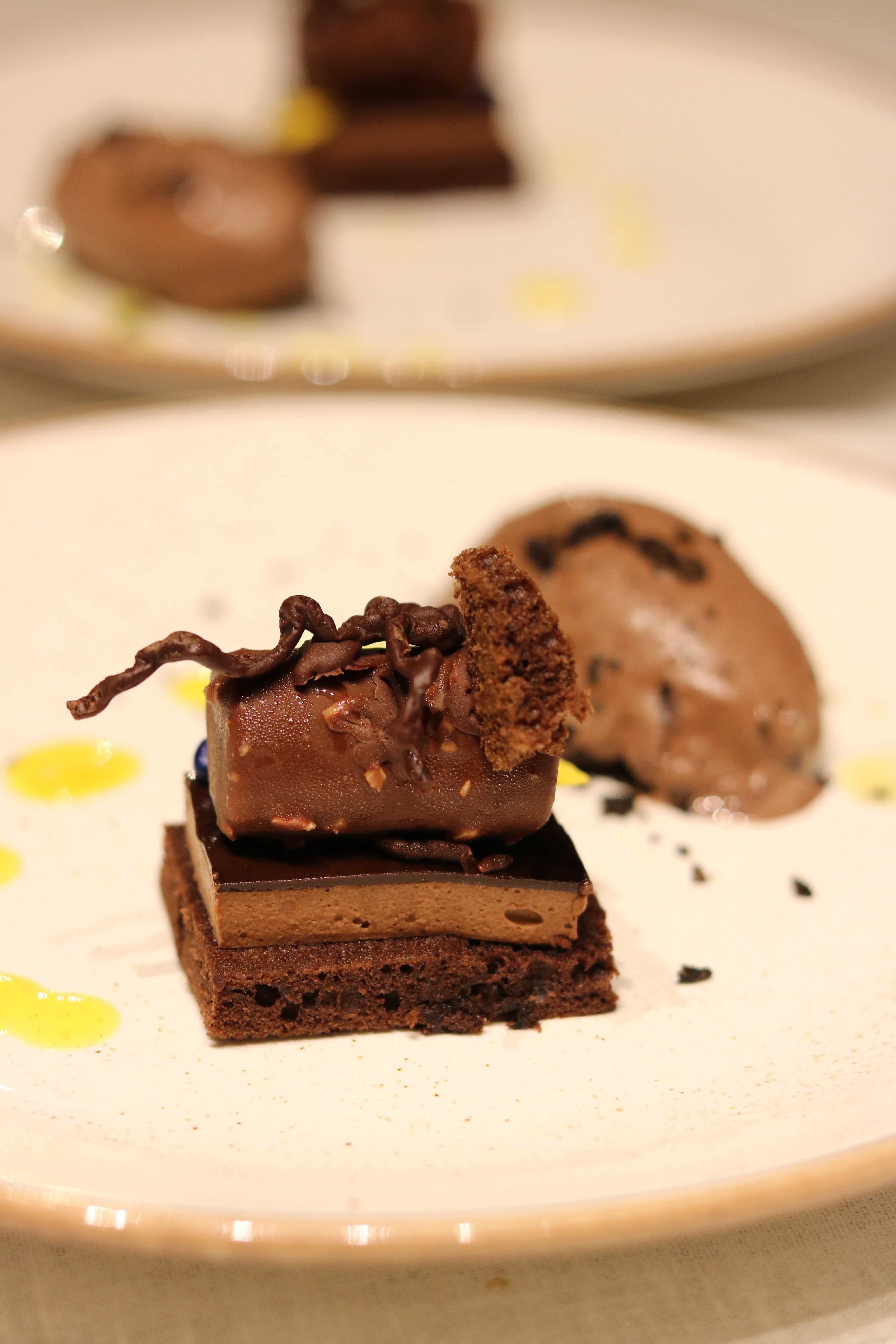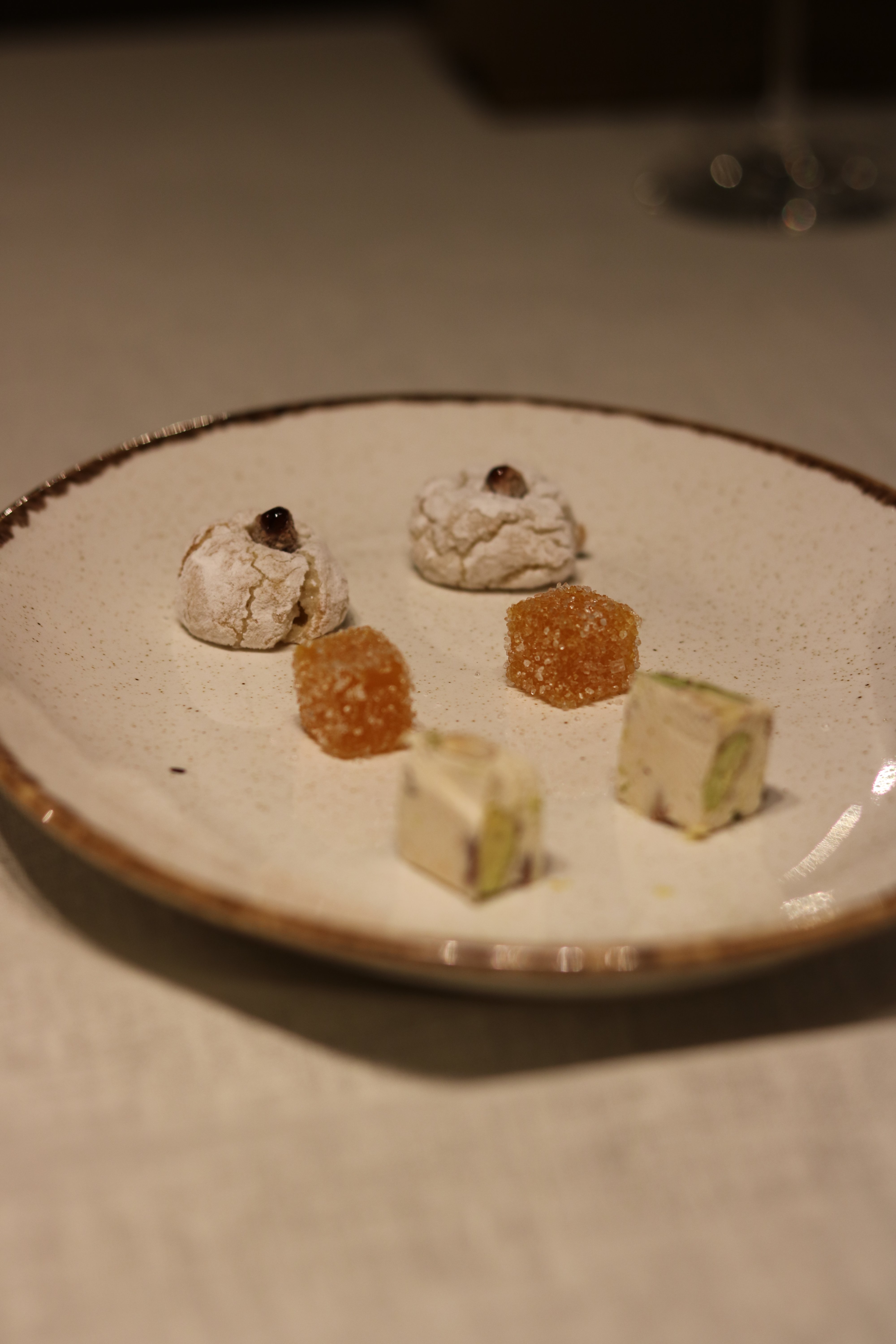 We started with a typical bread basket, featuring the warmest olive and onion foccacia, followed by the amuse bouche of foie gras with artichoke cream. Although I’m not a very big fan of foie gras, the artichoke cream was quite the interesting element. Next up was the starter of slow cooked egg served with siphon Montebore cheese foam, green asparagus, truffle and marinated egg. A very comforting dish, this was almost like a cross between an appetizer and soup, and something I could’ve eaten all night. The melange or truffle and cheese foam was in such perfect harmony with the egg, it activated every taste bud on our palates. The middle course featured a risotto with green peas and basil. Another comfort dish off the experience menu, this was certainly one to not miss. While I am not one to compare my creative mind with that of Michelin starred chefs, I believe the addition of mushrooms and truffle would’ve done wonders to this humble porridge. Our main course included a succulent portion of seabass placed on a bed of fennel cream and anise consomme. The very subtle spices brought out the delicate flavor of the fish, one that my plus one loved. I, on the other hand, often find myself obliged to try out fish based dishes only to find the smell too strong for my olfactory senses. I tried a piece or two, but gave the rest a miss. For the dessert course, we were offered a chocolate and olives cake paired with a similar tasting gelato. Very creamy, the gelato and pastry both were dotted with gritty pieces of olives, making it a rather unique albeit delicious combination. We finished it off with a petit four selection of nutty and fruity accents.