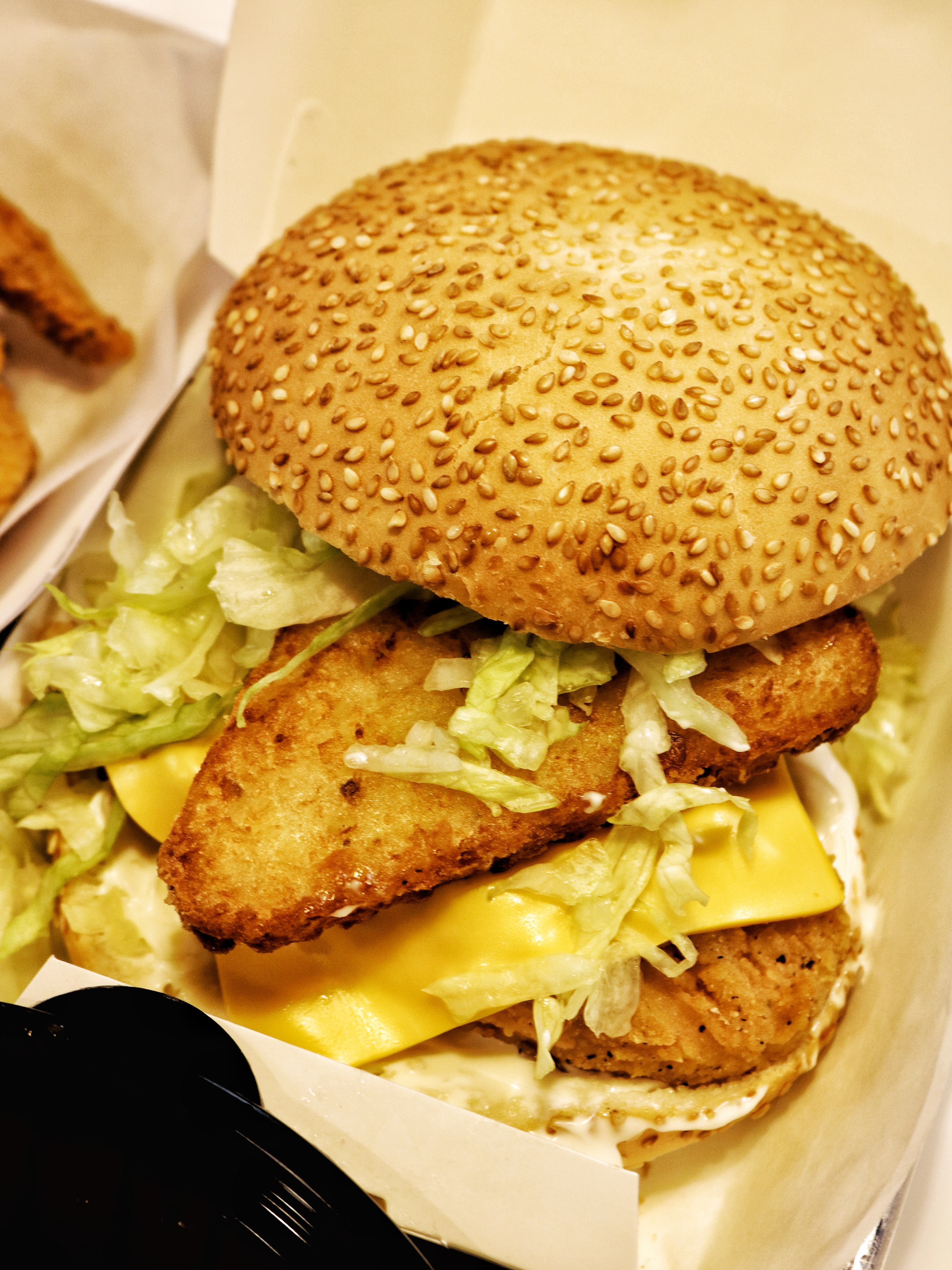One of their bestsellers, the Mountain Burger comes with a crispy chicken fillet topped with a hash brown and sandwiched between sesame buns with lettuce and sauces. While I loved the hash brown element, I didn’t like the chicken too much. It was probably a little too thick which made the center quite bland. A more leaner fillet would be the right one for this burger.