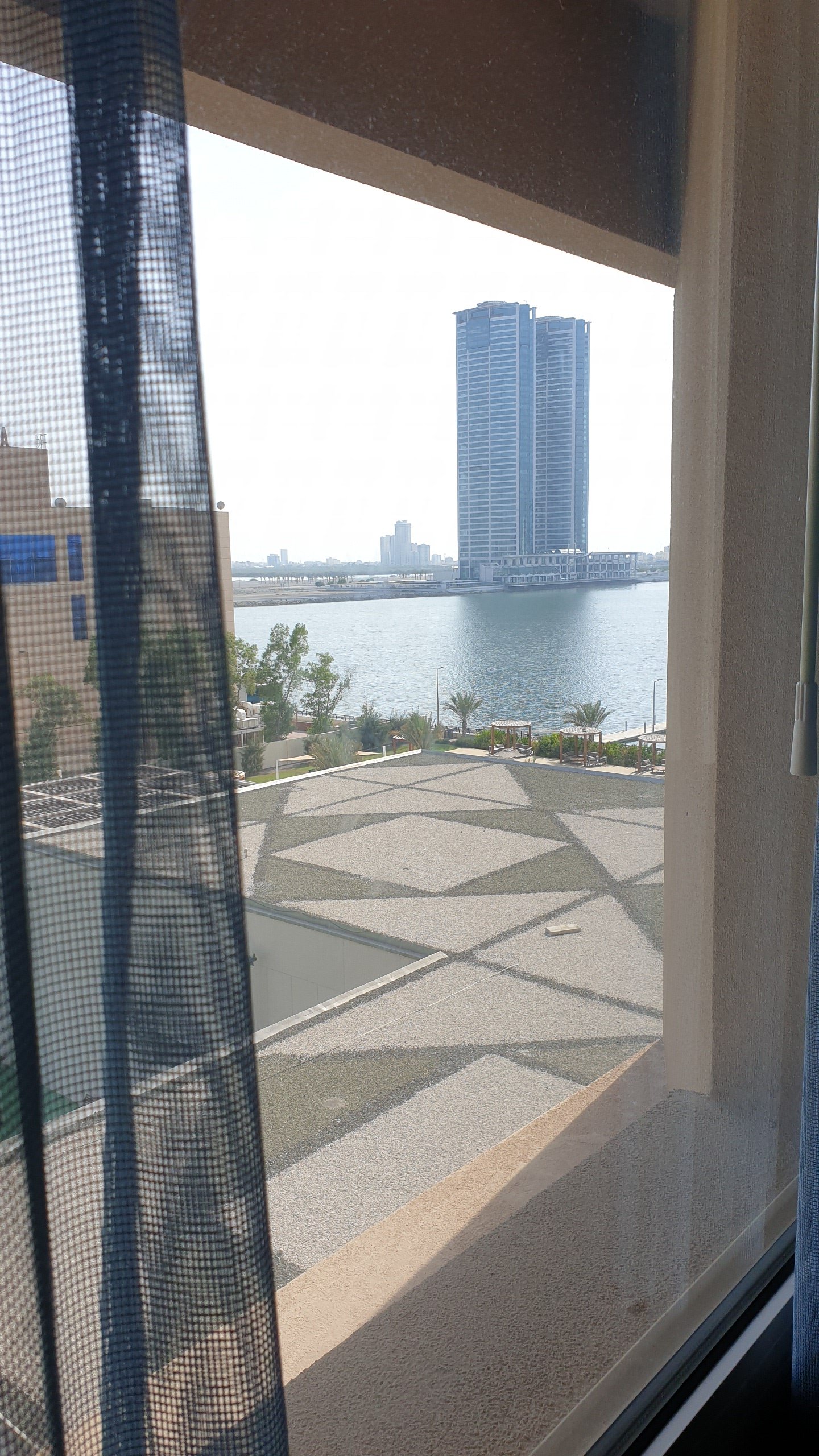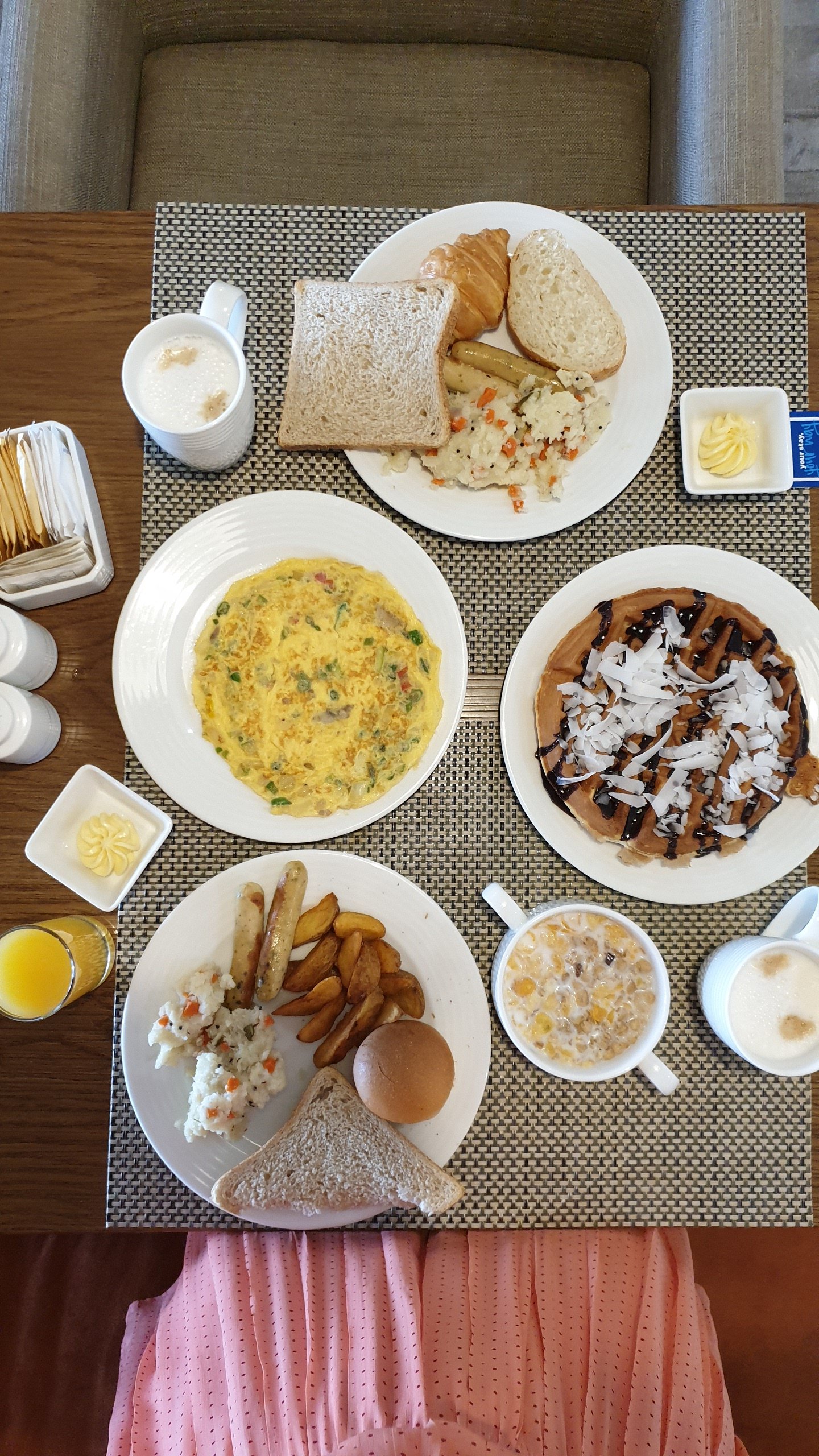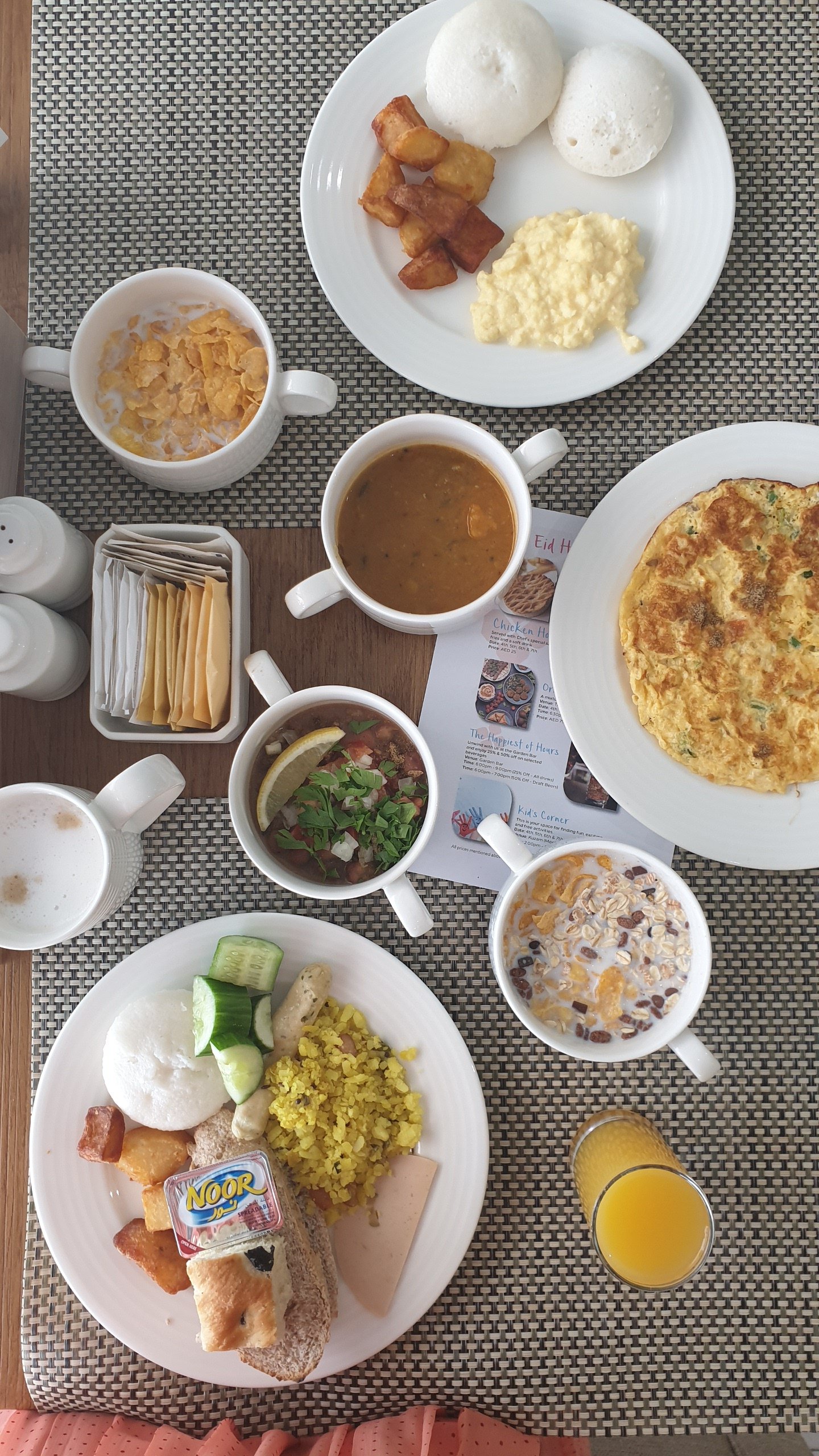 The room was quite expansive, consisting of a large double bed, a corner desk with a chair, an arm chair with a pouffe and side table, a 4 door wardrobe, TV, mini bar and tea-coffee facilities. Very easy for moving around, there was enough space for up to 3 adults to live comfortably. The window in the room gave us partial views of the corniche, tennis court and next door Naeem Mall. The bed was up to my standards and I believe I had a peaceful sleep on 2 out of 3 nights, the odd one being the one where I had a terrible sudden cramp in my stomach, due to an earlier injury. Even then, I managed to get a pretty good sleep. The desk was the best part of the room. Luckily I was carrying my laptop with me, so I got the chance to finish quite a bit of my pending blog work, while also browsing IKEA to buy my own desk and chair at home.
