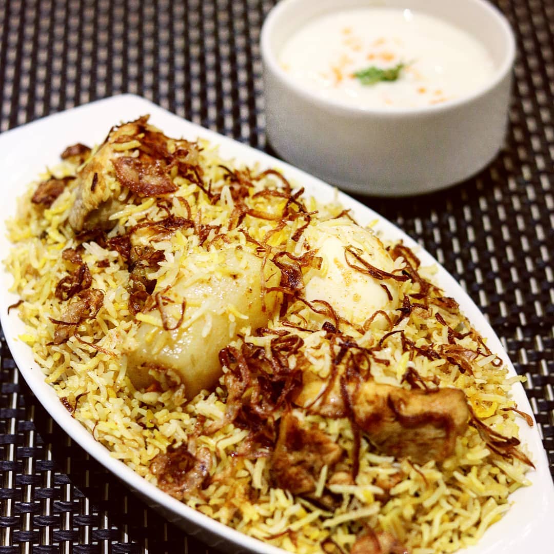 Next up, it’s time for Mughlai mains and we are left drooling with the sight of a grand Kolkata Style Chicken Alu Dum Biryani. The plating looks so perfect, we are almost too scared to want to eat it. Topped with a couple of chicken pieces, a chunky potato and a boiled egg, this is exemplary of how every biryani should be. Served with a raita on the side, we eat a couple of heaped spoonfuls of the rice along with the succulent chicken before we decide to get the rest packed for next day’s lunch.