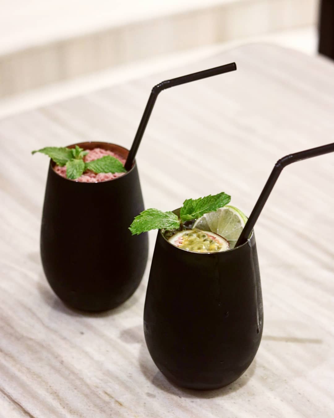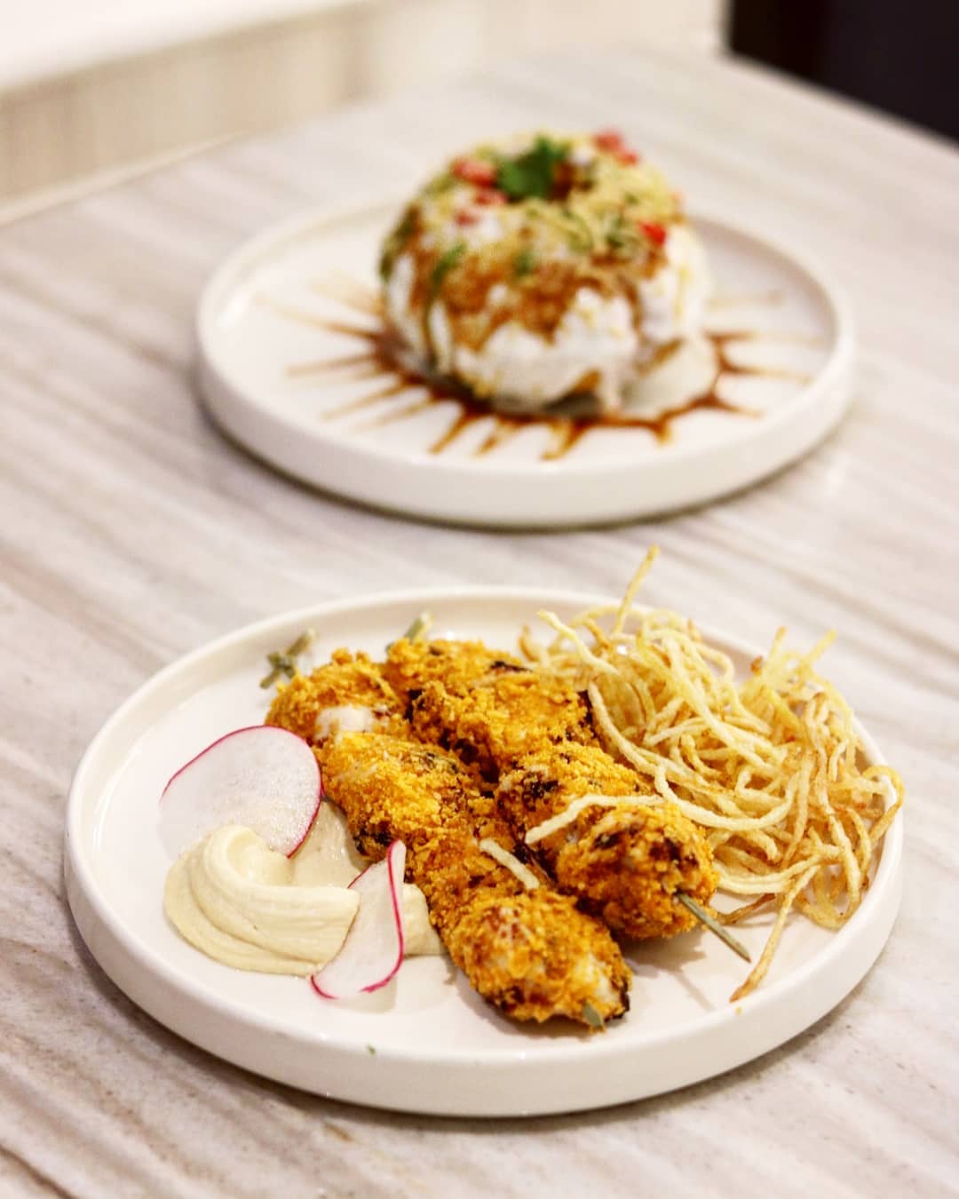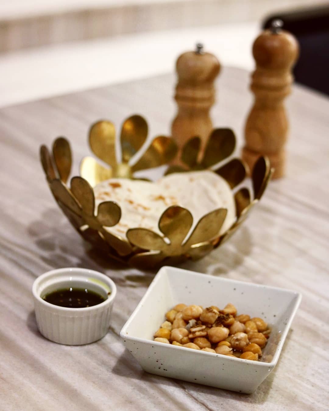 Once we are seated one of their pretty looking tables, we are handed over a tablet menu that lists each dish with a gorgeous photo and its main ingredients. We ask our server to suggest the best of the lot and go with everything she recommends. While we wait for our food to be prepared, we are offered a complimentary bread basket that features freshly baked pita bread paired with chickpeas and za’atar in olive oil. Our drinks follow shortly. Owing to the crazy humidity outside, we choose to sip on two of Ana’s bestselling mocktails. I pick my usual passion fruit mojito, while my plus one opts for their famous Vimto which is made with a unique combination of Vimto syrup and coffee. Both the drinks are refreshing and last almost throughout the meal.