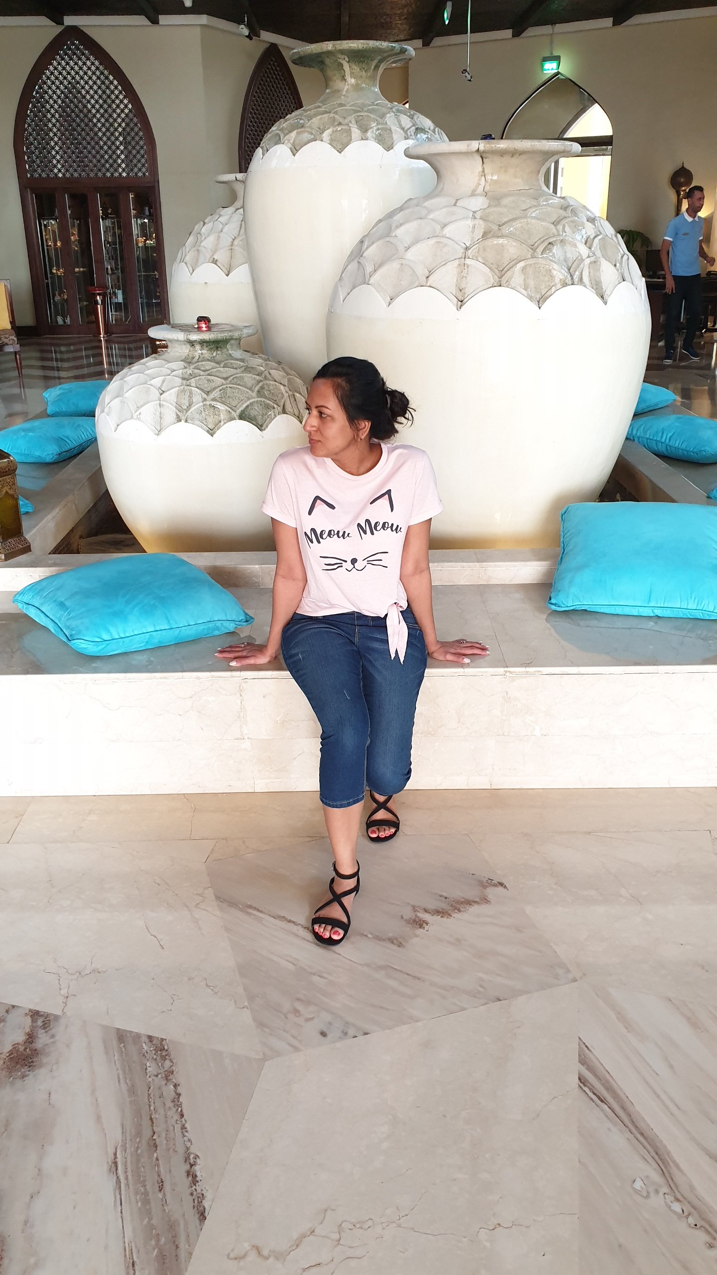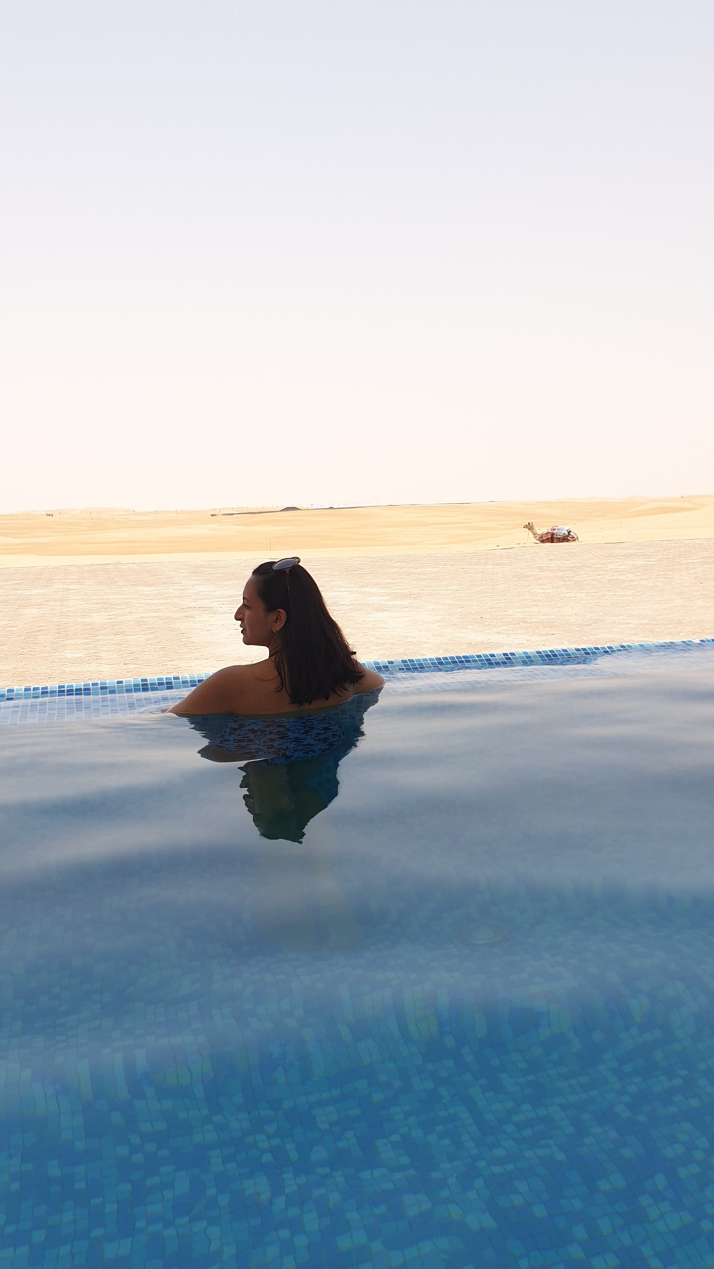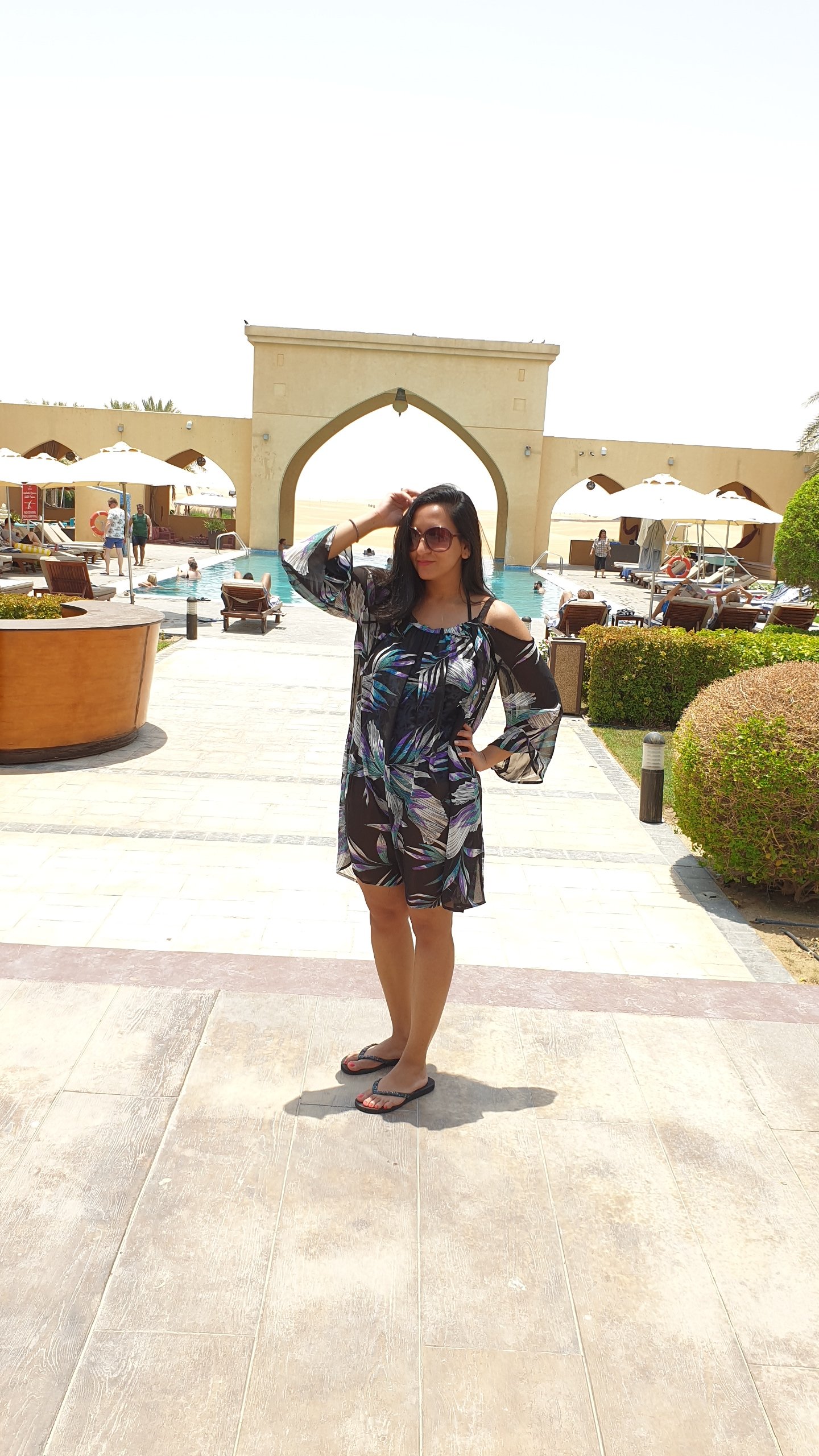 I really really like the pool at Tilal Liwa. Yes, there are so many gorgeous pools in Dubai and I have been to quite a few of them as well, but something about the calming infinity edge looking into the nothingness of the desert really soothes my senses. After seeing tons of people floating in pools, this time around, I picked up an inflatable from ACE Hardware along with a manual pump, and I really enjoyed floating on it. The afternoons did get hot and dry, but that was only if you were lounging outside the pool. The pool waters were cool and while we were inside, we didn’t feel the heat at all. We actually spent quite a lot of our two days soaking up the sun and wading through the pool waters. The depth wasn’t too deep like the one at Rixos, so I found it quite comfortable to walk around and do some posing for the gram!