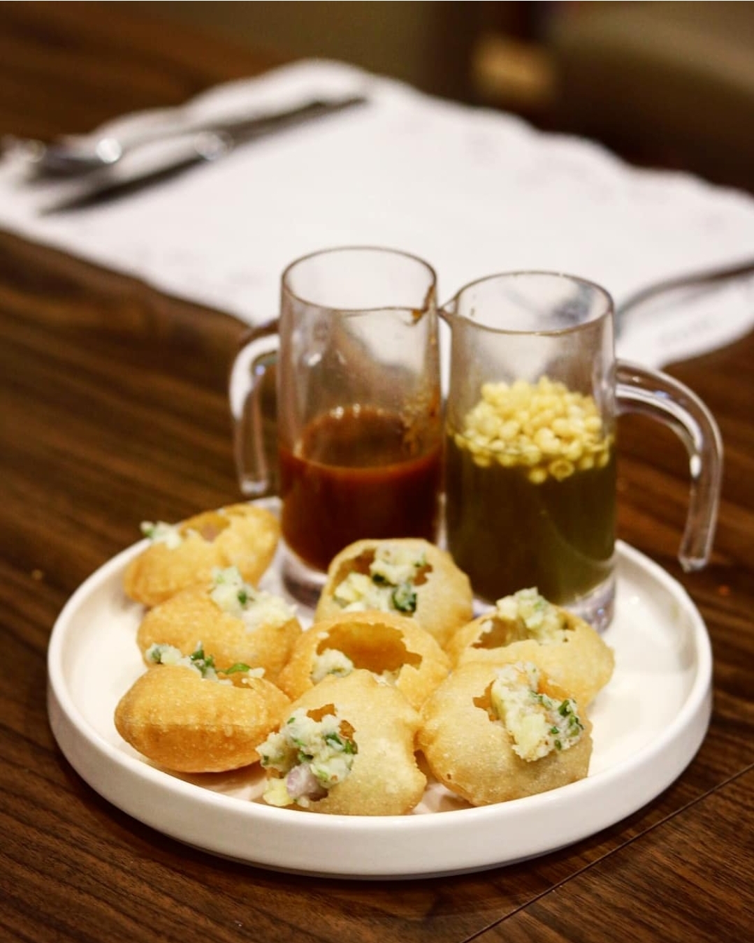 Their new chaat menu at the counter instantly caught my eye, and I knew I had to begin my dinner with this before I dove into the BBQ. Our first choice was the classic pani puri that featured a lovely mashed potato stuffing and the usuals of sweet chutney and spicy water on the side. Pani puri alone is no fun, so our server suggested we take up the chaat quotient by adding some papdi chaat to our table. A mish mash of papdi with potatoes, yogurt, sev, chutney and LOTS of different spices, this was a explosion of flavors. I would have liked it slightly spicier though.