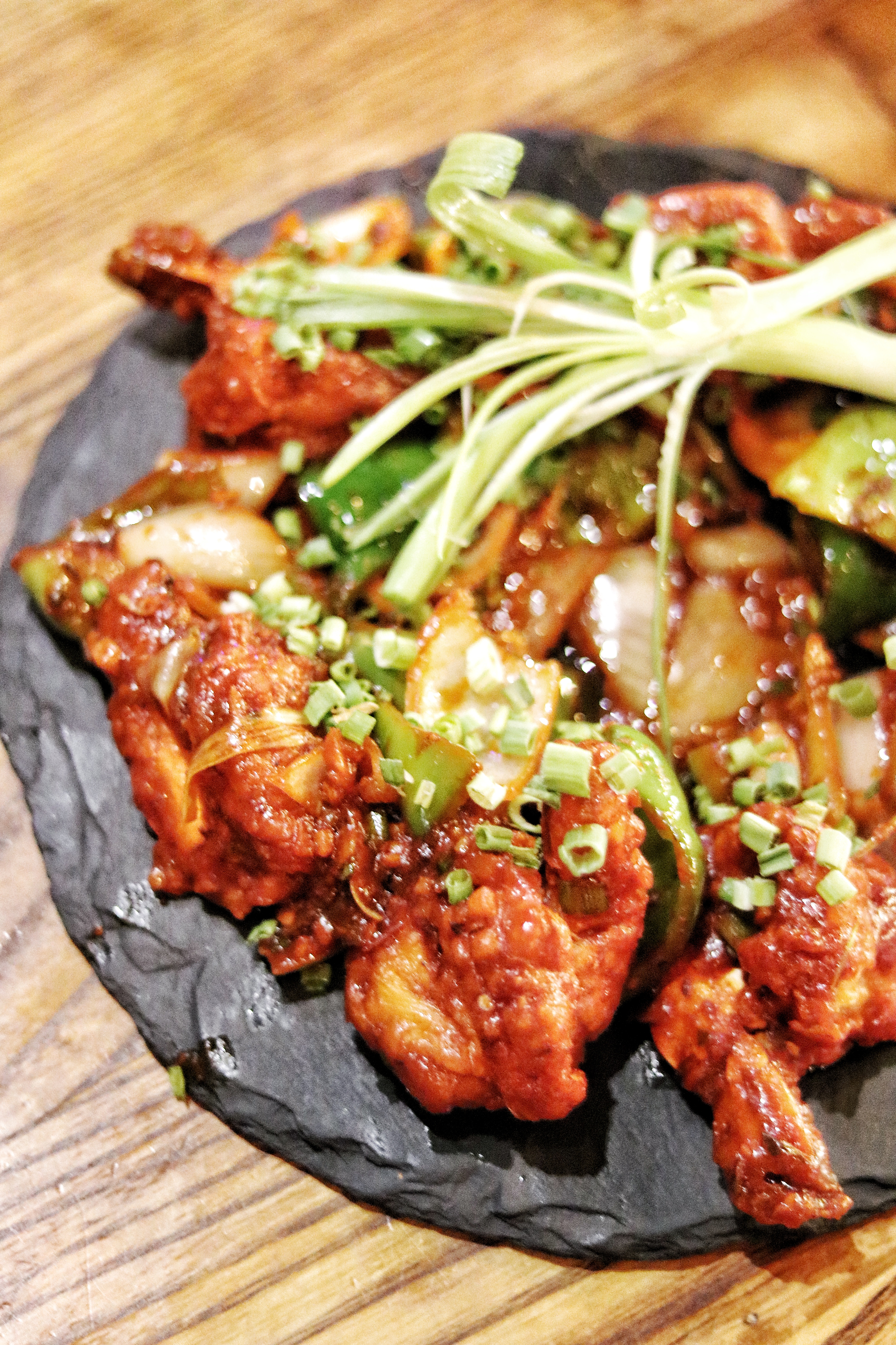 Our first dish on the list was from the GS Special Platter – Gemma’s Double Dragon King Prawns. These arrived in full style! With a smoking center and hot prawns tossed in their secret dragon sauce all around, this dish was a total delight. I loved the king prawns for their spicy flavor and the capsicums on the side.
