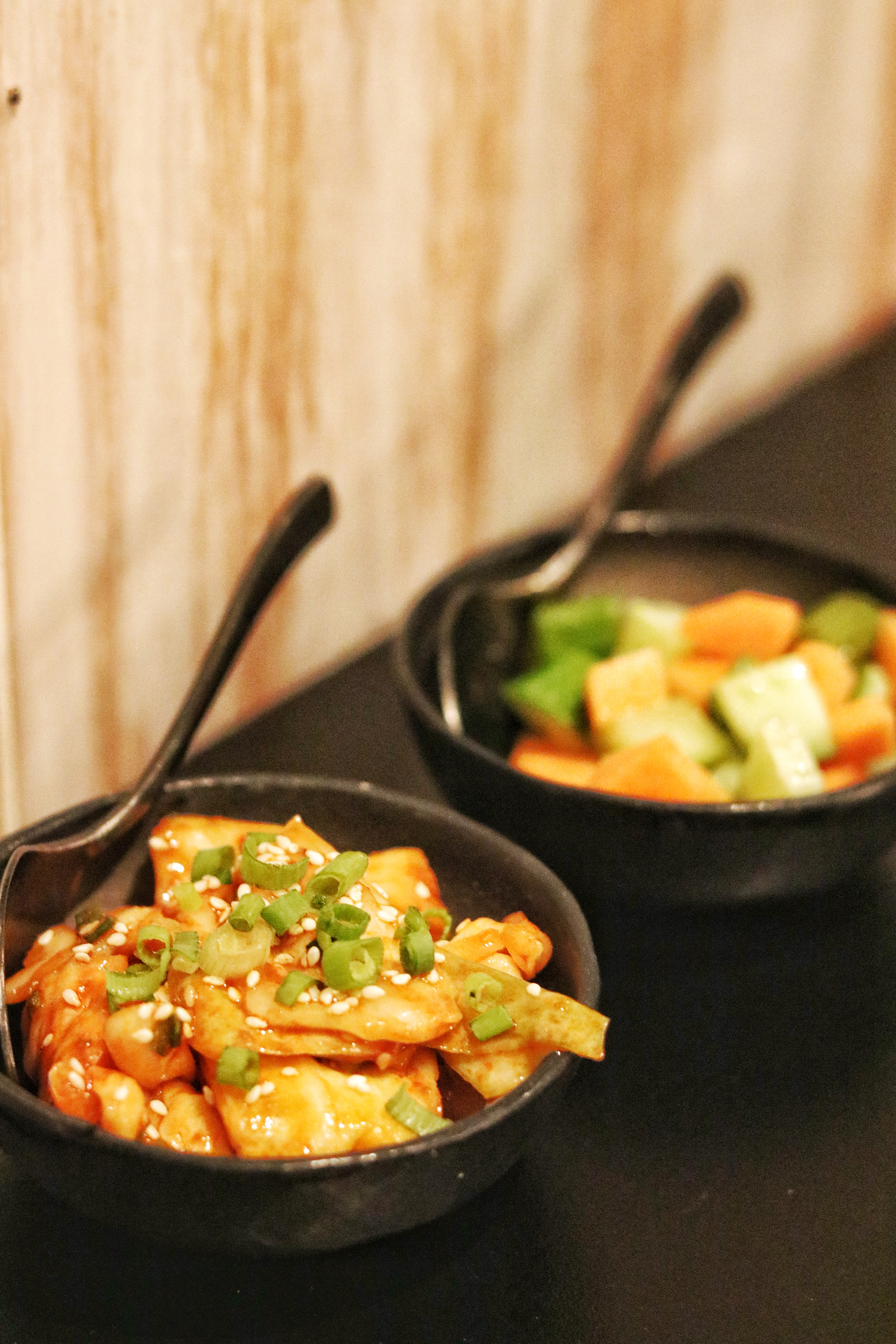 To start with, we were offered an Asian amuse bouche which included a portion of kimchi and a portion of pickled veggies. Then we moved on to mocktails. I ordered the Blue Hawaiian while my plus one went for the Pomegranate Lemon Ginger. Very crafty, the sweet and sour blend in the latter featured pomegranate and lemon juices, along with ginger ale, and a lovely flavor boost thanks to the addition of black salt. It was almost like a kala khatta. The former drink, combining sweet pineapple, bold blue curacao and strong kaffir lime, was truly tropical in looks and taste.
