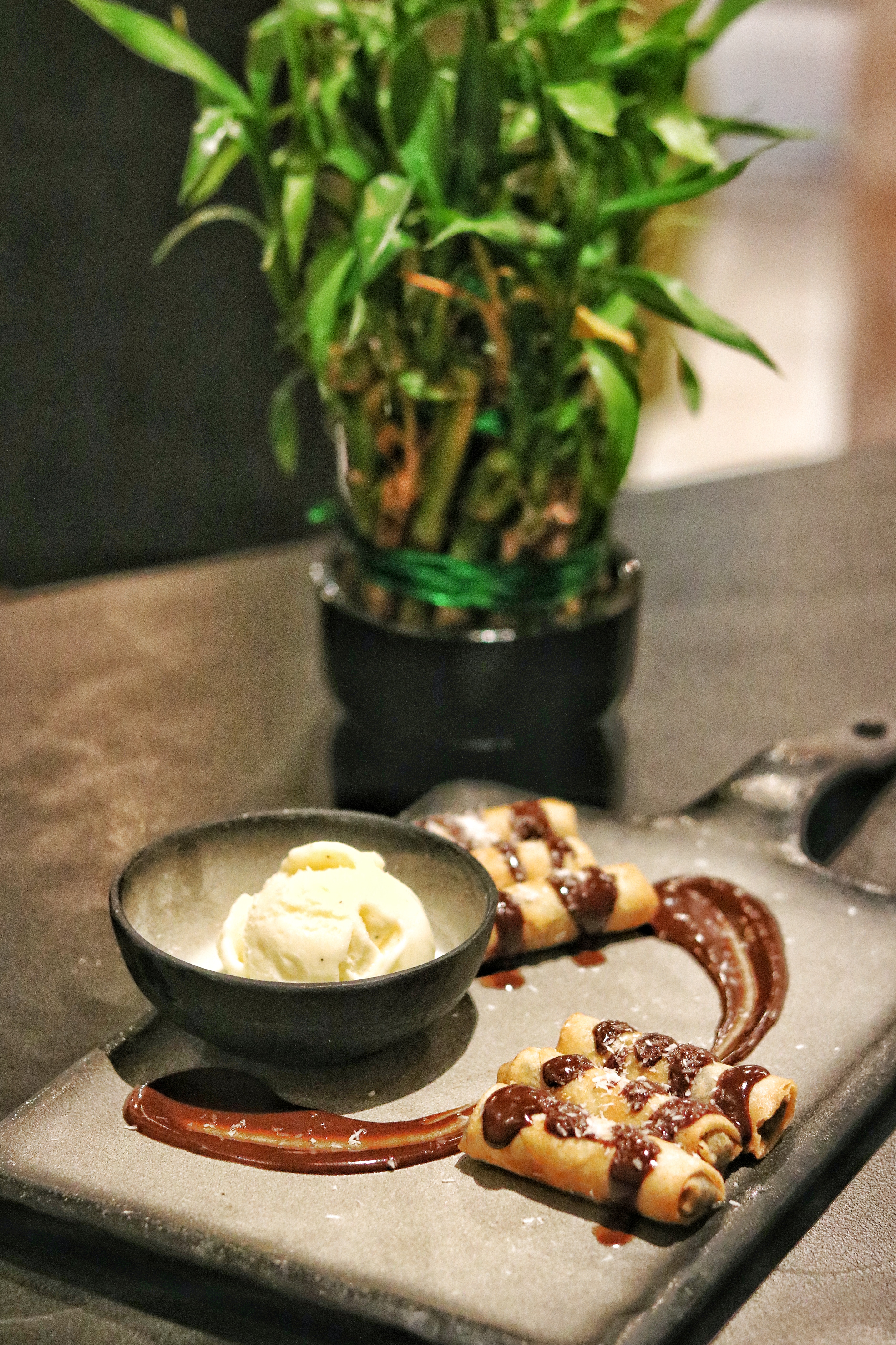 Finally it was time for dessert. I always find it interesting to see how Asian restaurants spin classic desserts to fit their style. And these Hot Chocolate Rolls were a lovely concept, that fit the bill just right. Filled with oozing chocolate inside spring roll pastry and topped with more chocolate, they were like a dream. I, obviously went a little cuckoo when I saw the coconut garnish, but truly these rolls were everything – crunchy, creamy, chocolatey and of course, coconutty! The smooth vanilla ice cream on the side added a sweet touch to the rich chocolate.