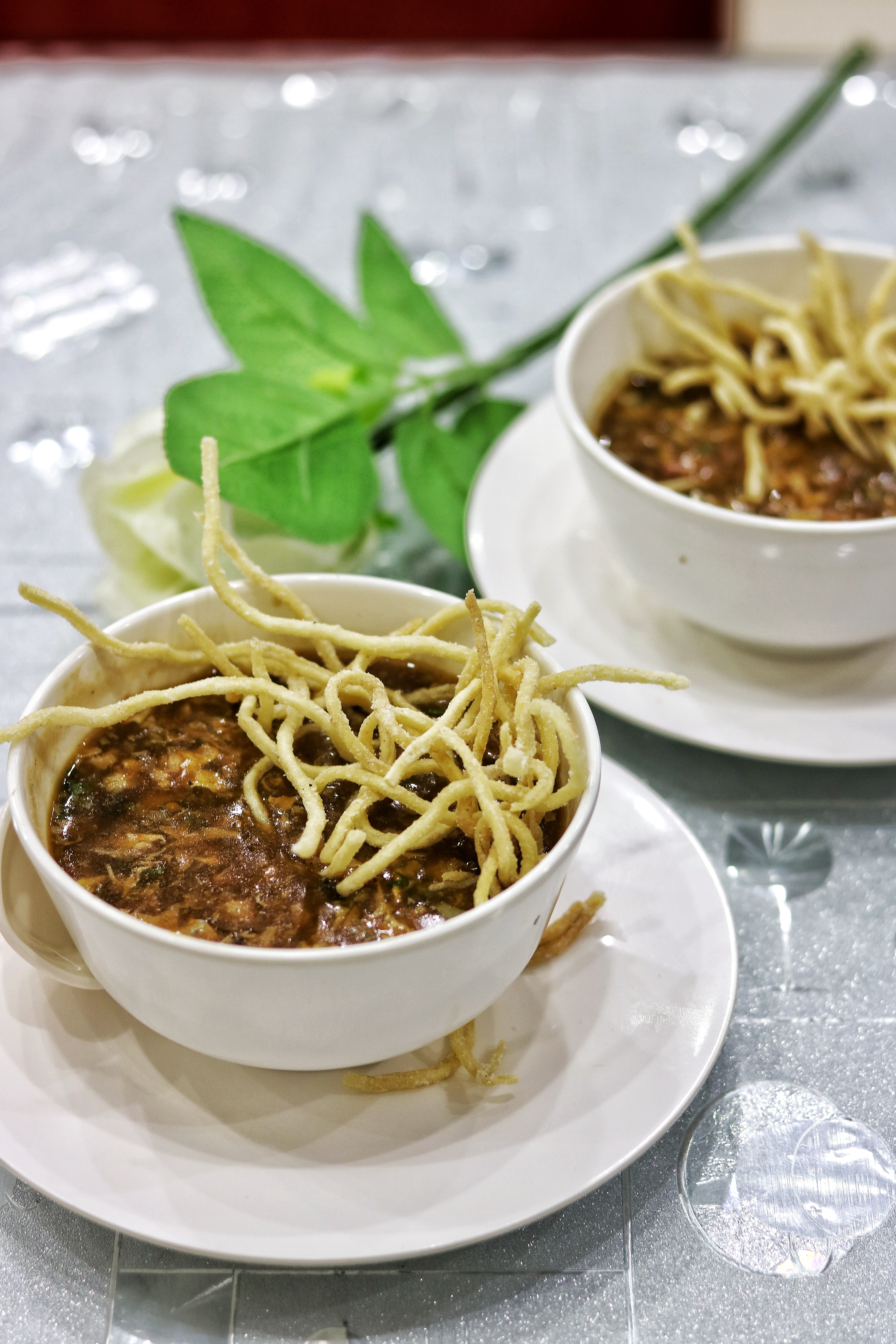 Along with the cold drinks, we were offered some hot Manchow chicken soup. Apart from the fact that its super spicy, my favorite part about this soup has always been the crunchy noodles that are added on top and enhance the flavour of the soup even more. I love how these noodles maintained their slight crunchiness even after being soaked in the soup and at the same time, they were soft enough to not fall off the spoon.