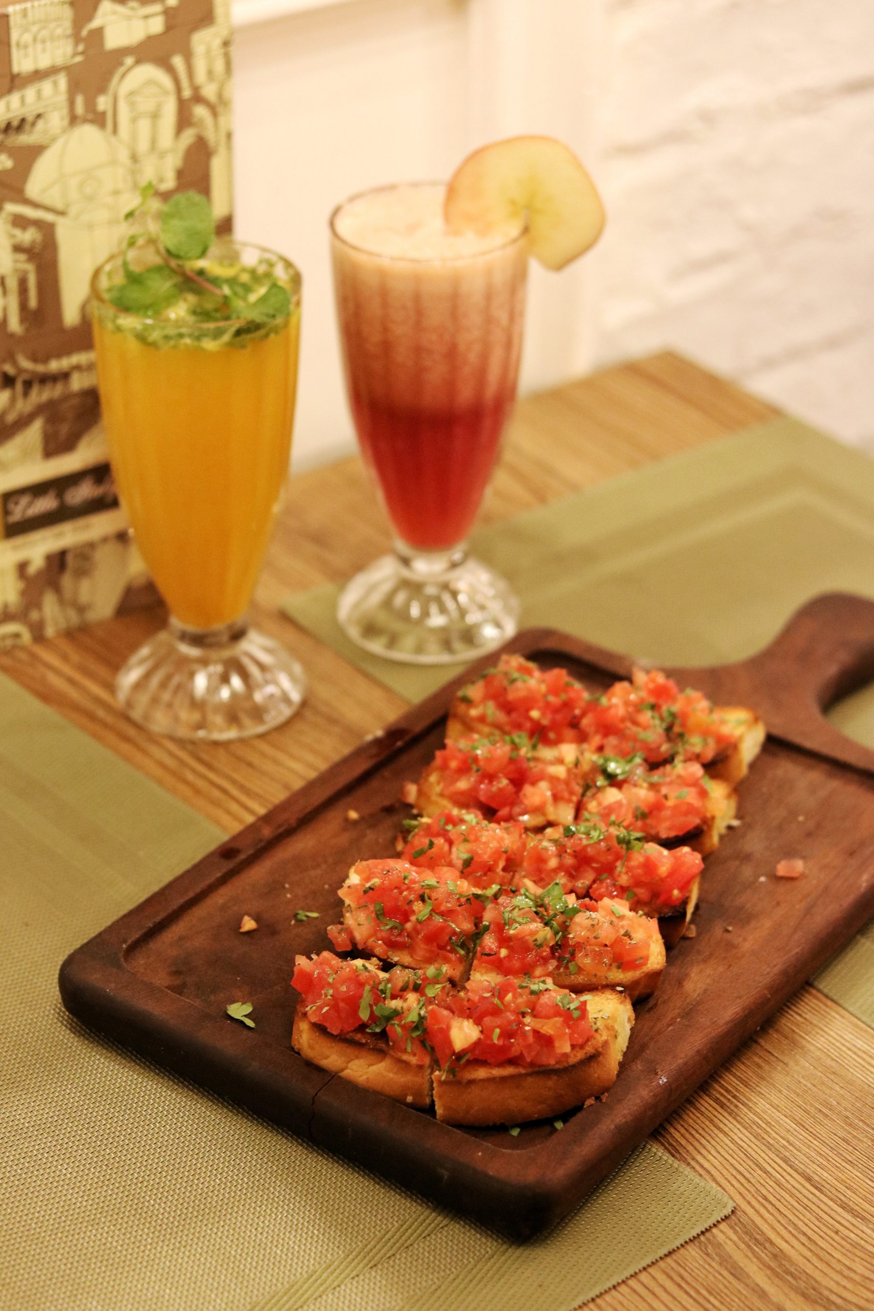 For food, we were first presented with a very creamy and comforting Tomato Soup, dotted with croutons, which really helped combat the chilly interiors of the restaurant. Next we were brought Masala Garlic Bread and Bruschetta. Although the masala garlic bread felt pretty much like normal cheese garlic bread, I loved the fact that it was soft and crispy in the right places. The bruschetta topped with the freshest diced tomatoes was quite good too.