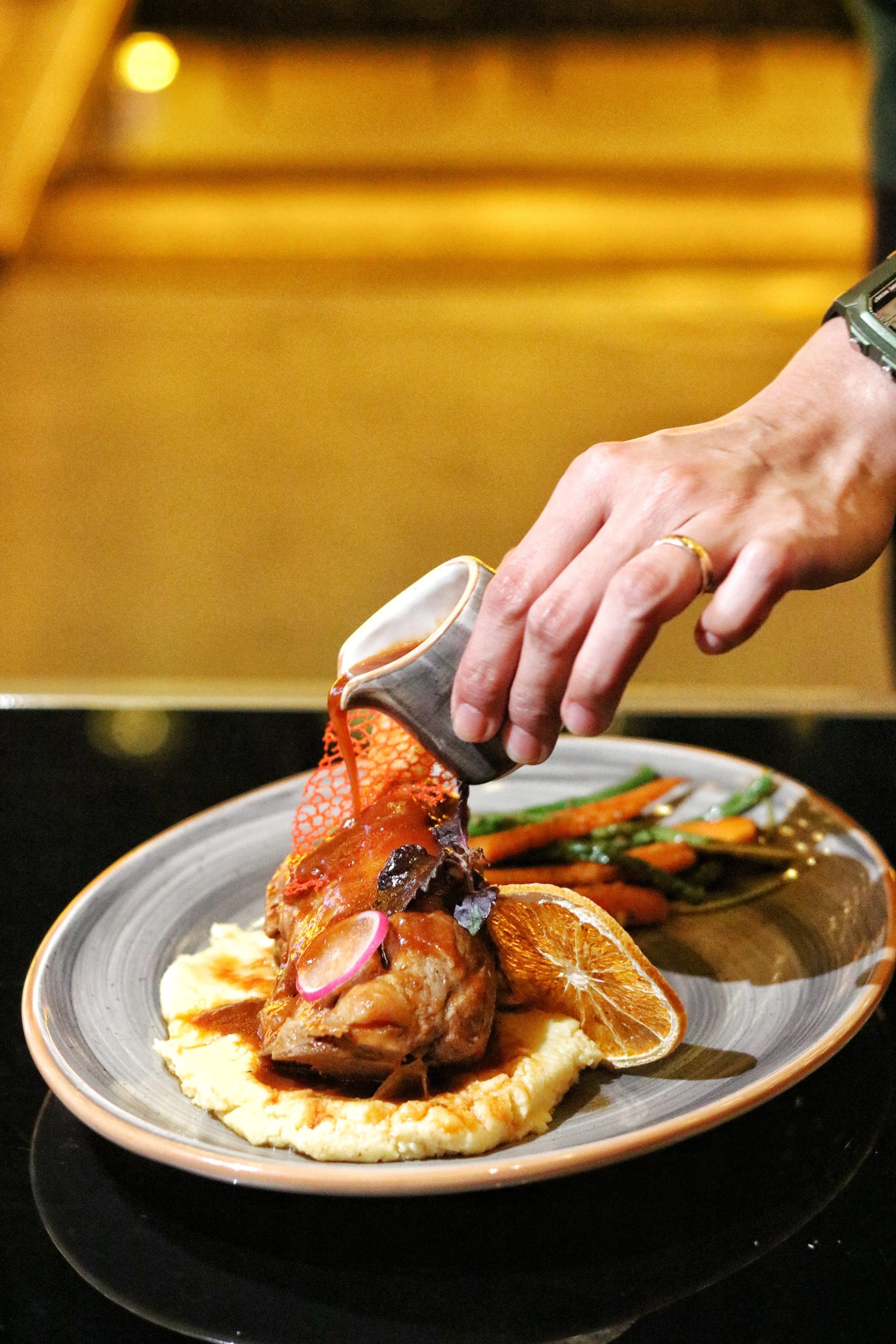 For mains, I choose my favorite, while my plus one opts for his. Mine is a Wild Mushroom and Truffle Risotto. Oh my, oh my. If happy dreams could be classified as food items, this one would definitely be mine. Dotted with so many different mushroom varieties, this beauty is silky smooth, rich and very generous in terms of portion. My plus one’s Lamb Shank isn’t any less either. Juicy and fall-off-the-bone tender, the lamb in this dish is cooked to perfection. The addition of roast gravy makes it even more juicy and the polenta mash is a nice starchy alternative to the usual potato.
