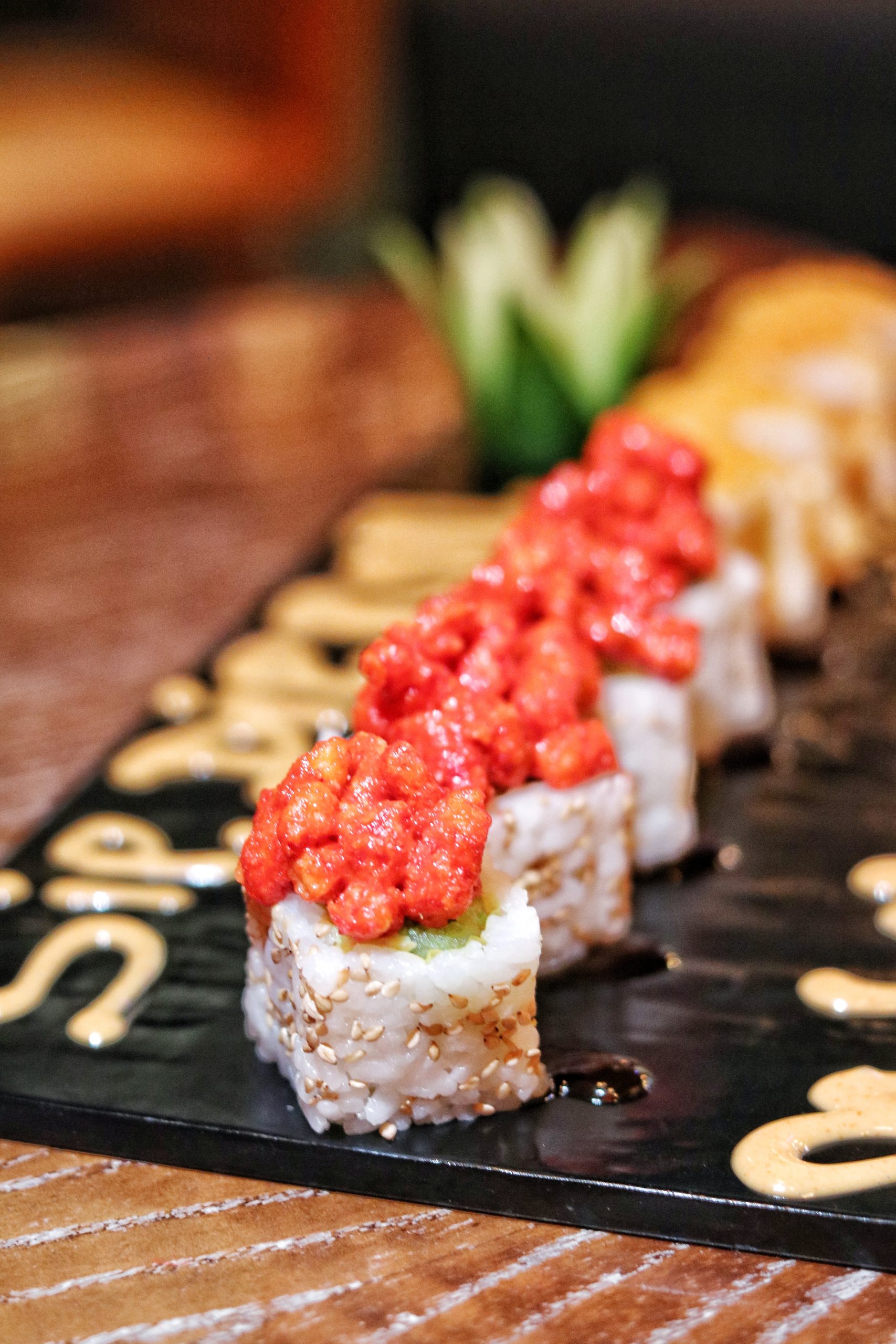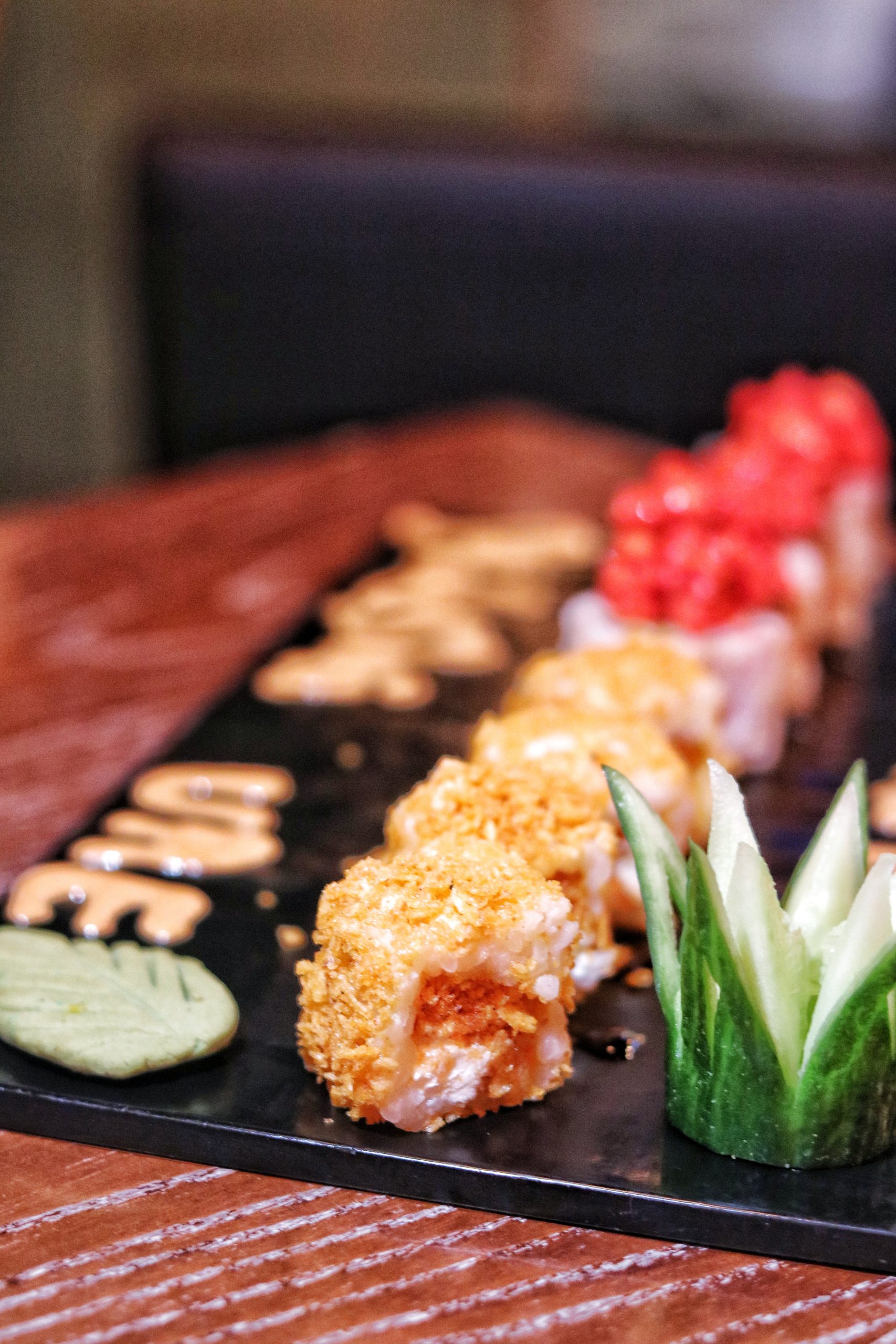 In terms of maki rolls, we tried not 1 or 2 or 3 or even 4, but 5 different varieties. And each variety stood out with a distinct flavor. My favorite among these were the Cheesy Chips Oman Rolls. Right from the creamy cheese, to gritty rice to crunchy chips, these vegetarian rolls offer a burst of different textures in every bite. The Flamin’ Asparagus Cheetos had its own flavor twist, but I feel it could have been slightly spicier. The Volcano Maki and Dynamite Rolls were another delight featuring shrimps – the former topped with a spicy creamy sauce, and the latter with capelin roe. To end the soiree, we had the Emperor rolls which was fair in taste, but my least favorite option.