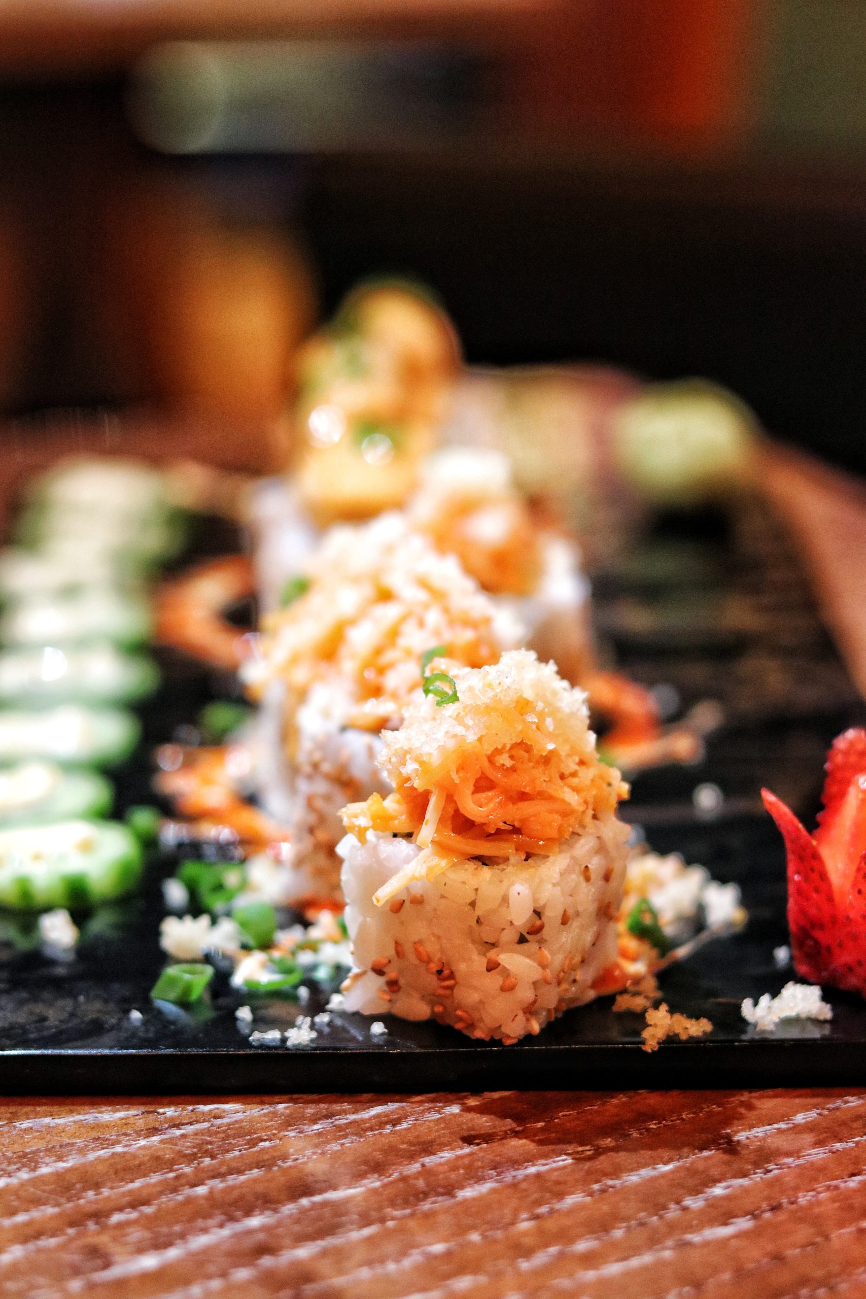 The sushi rolls at Moshi have always been a highlight of my visit to the restaurant. I love their creative fusion, and veggie options. I missed having their hot dog maki and chicken based rolls, but I will definitely be going back for those. I loved loved loved the cheesy chips oman rolls and dynamite shrimps.
