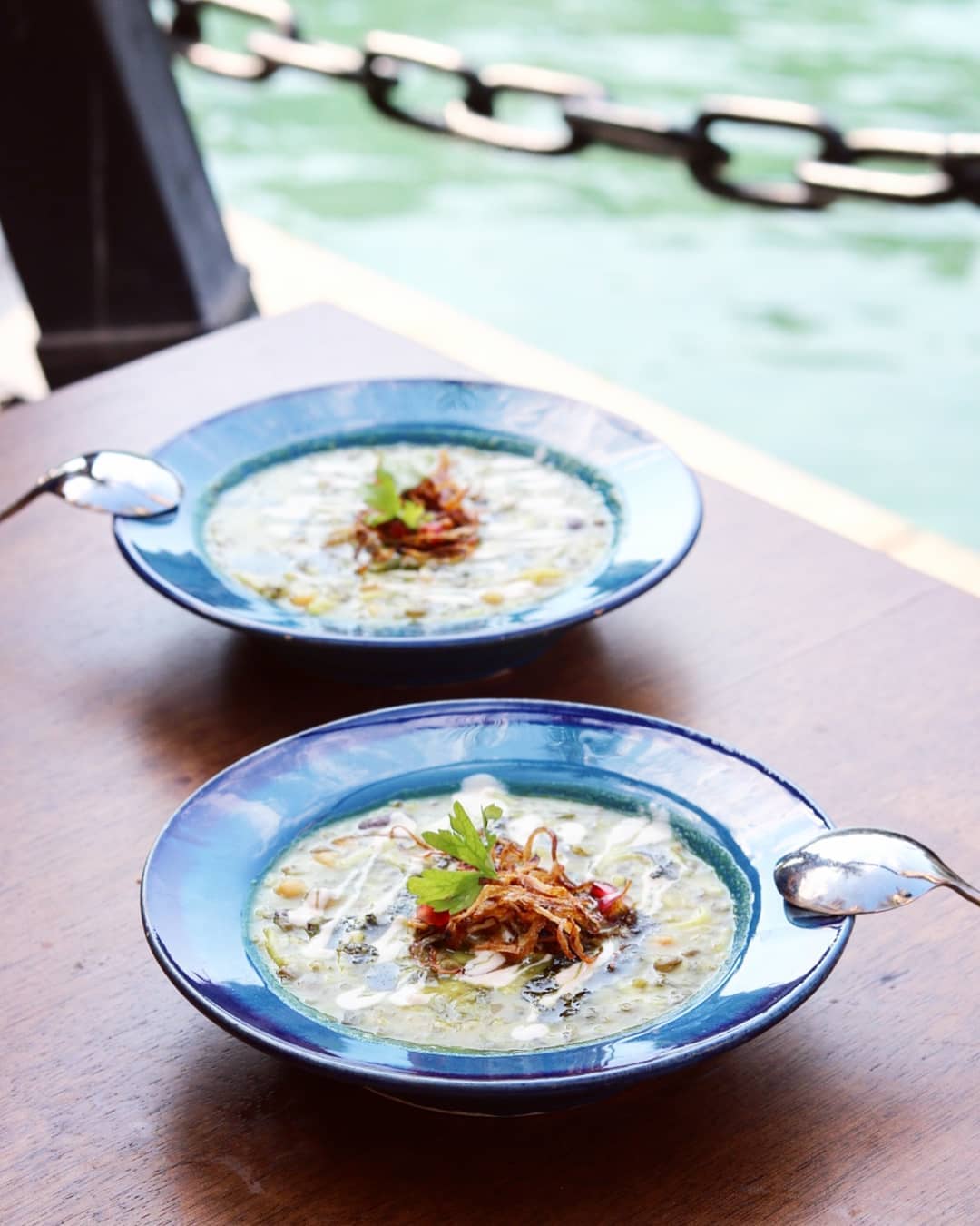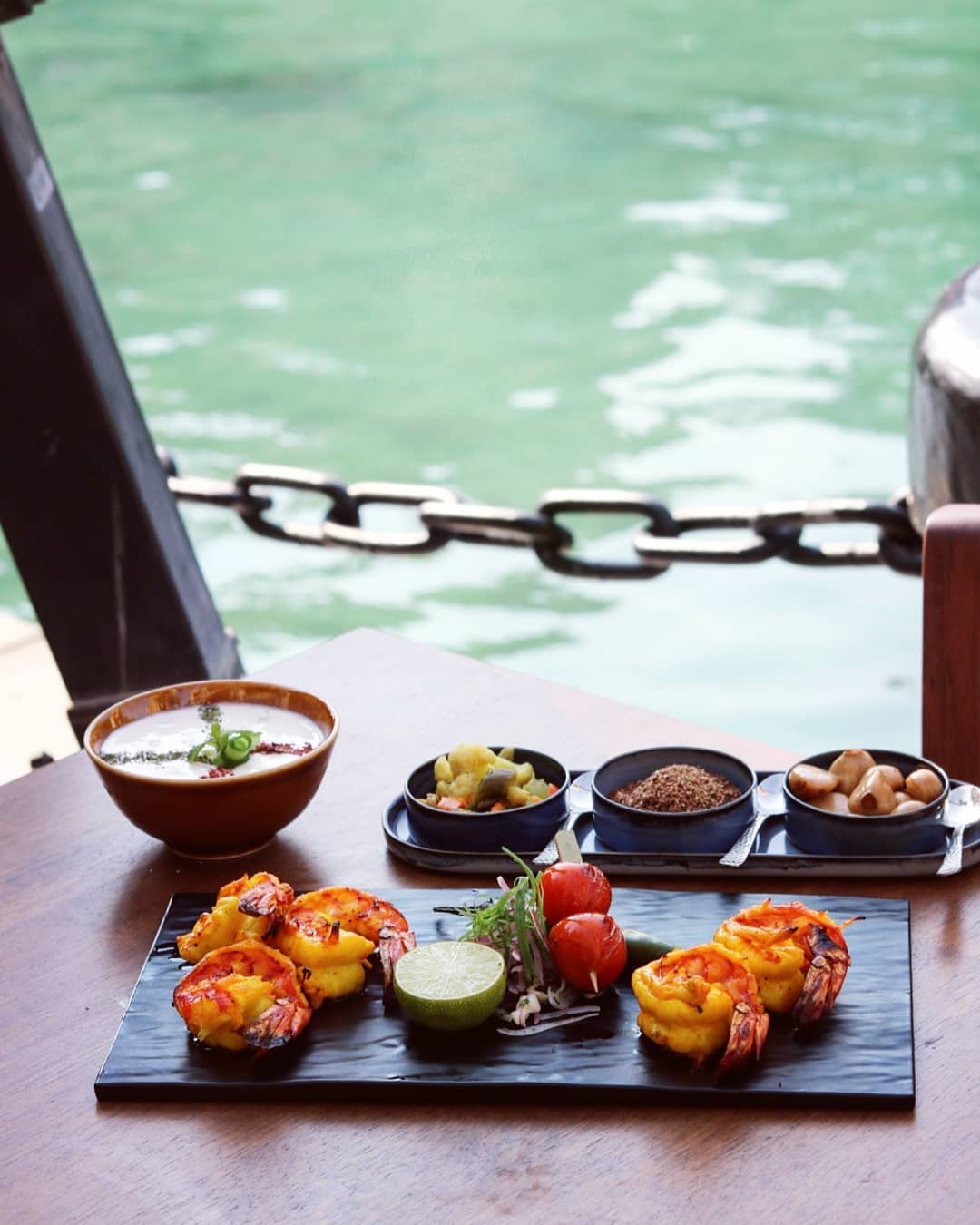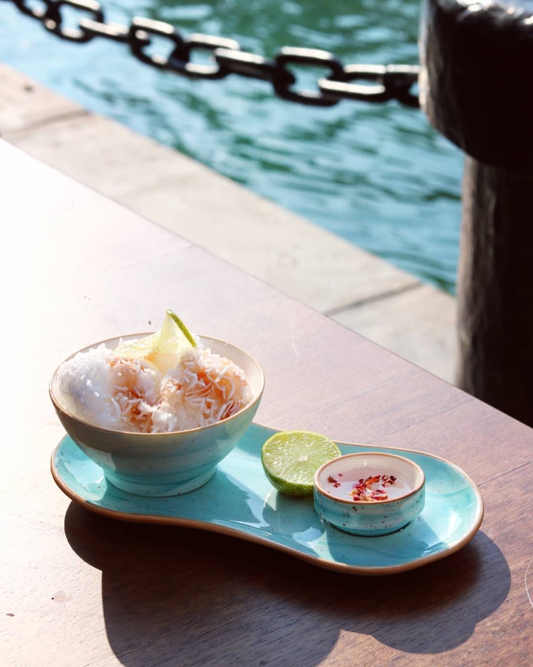 The restaurant, as expected, perfectly balances subtlety and glamour with its bold colors, bright yet minimal accents and a very earthy look. Obviously, we chose to seat ourselves outdoors by the waterway, but if you’re dining with toddlers who love to run around, you might either want to strap them to a toddler’s chair, or steer clear of sitting next to the waterway, since there is no fence around it.