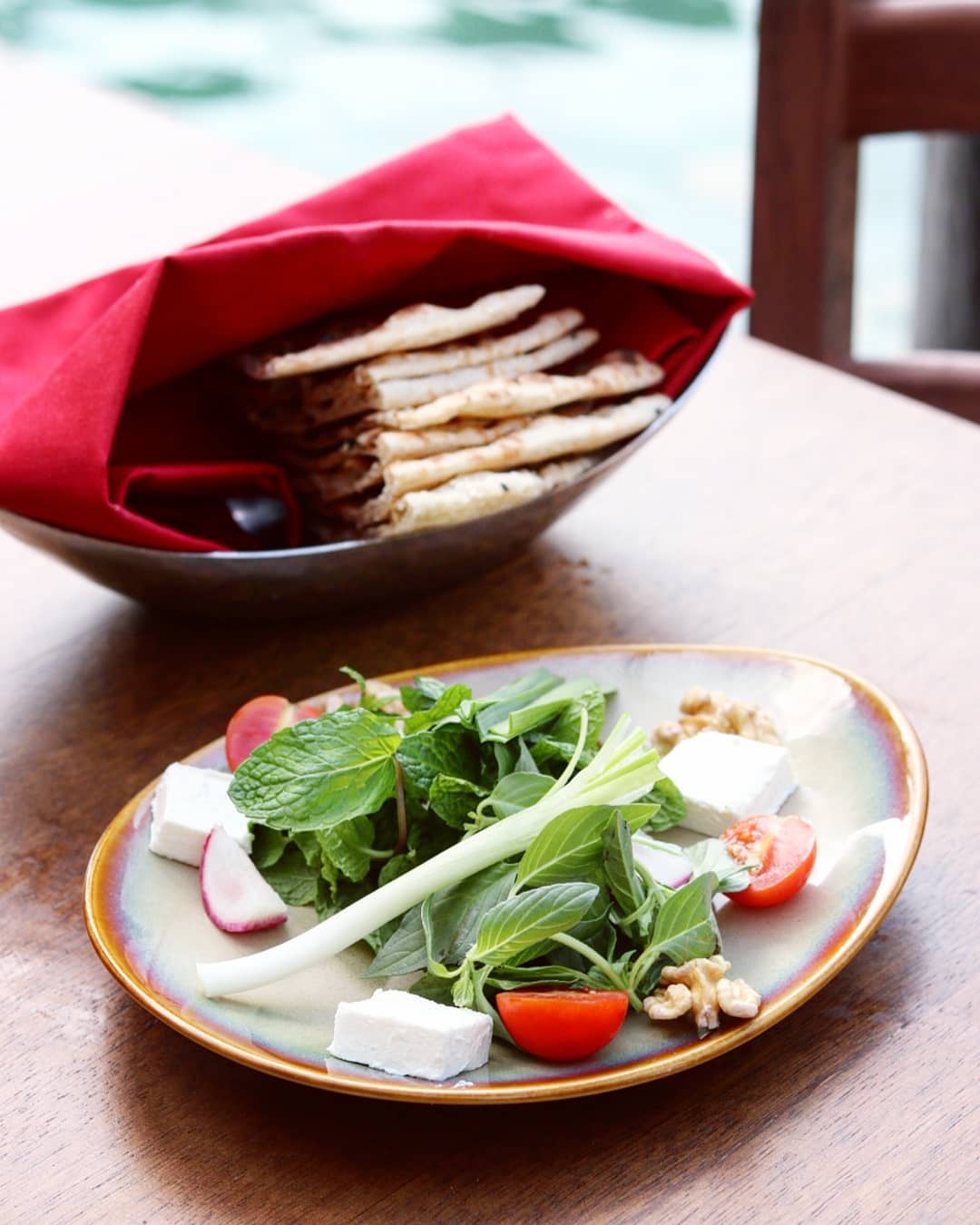 While we waited for our starters to arrive, we were offered some fresh bread with a salad on the side. I was quite impressed to see a feta and walnut salad instead of a dip, and to be honest, it was a welcome change from the expected usuals.