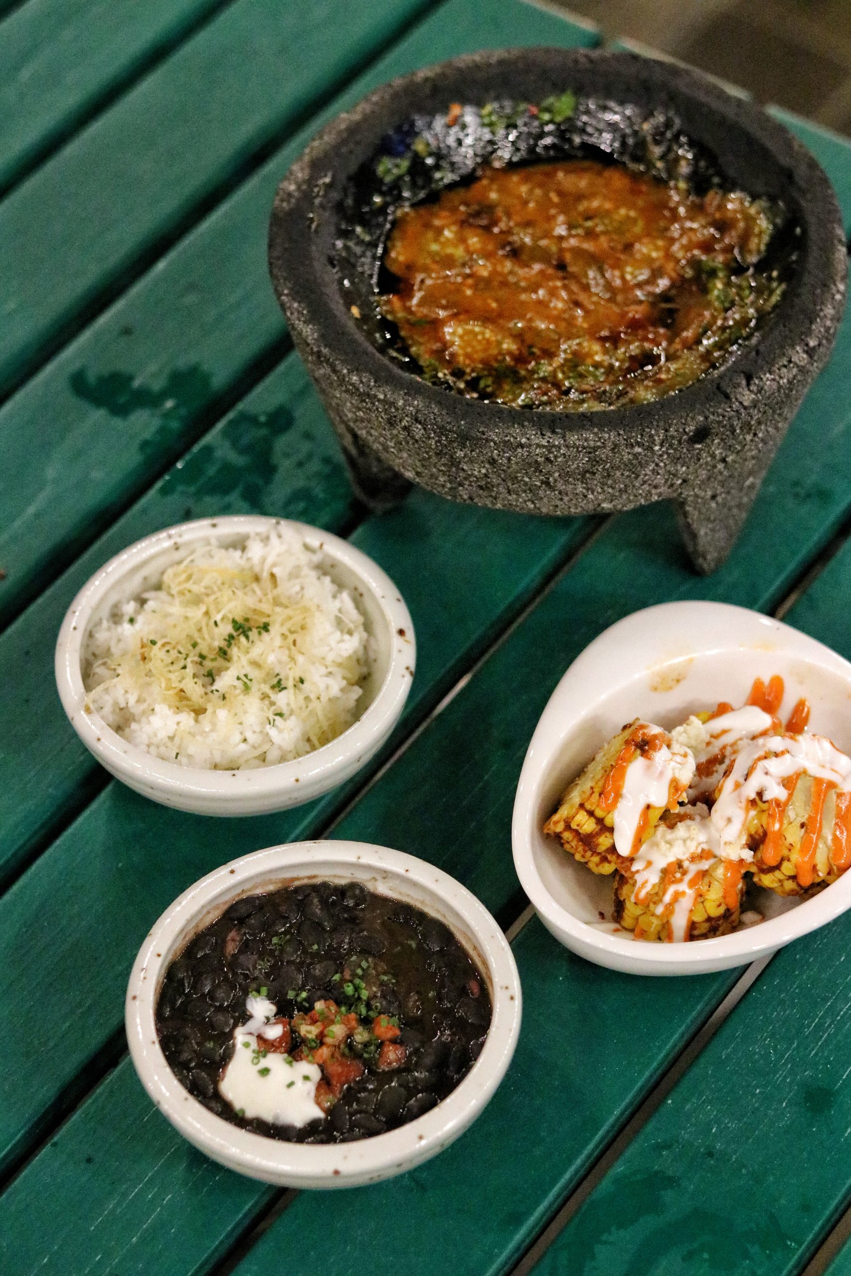 For the churrasco meats, we were instructed to place a card on our table that indicated on either side whether we were open to receiving more churrasco or if we were taking a break. How creative, no? Right from chicken and beef sausages to lamb chops and even grilled pineapple, the churrasco selection keeps coming in plenty. To go along with our meats, we were also presented with a chilli sauce that was freshly made at our table along with a black beans, corn on the cob and Mexican rice.
