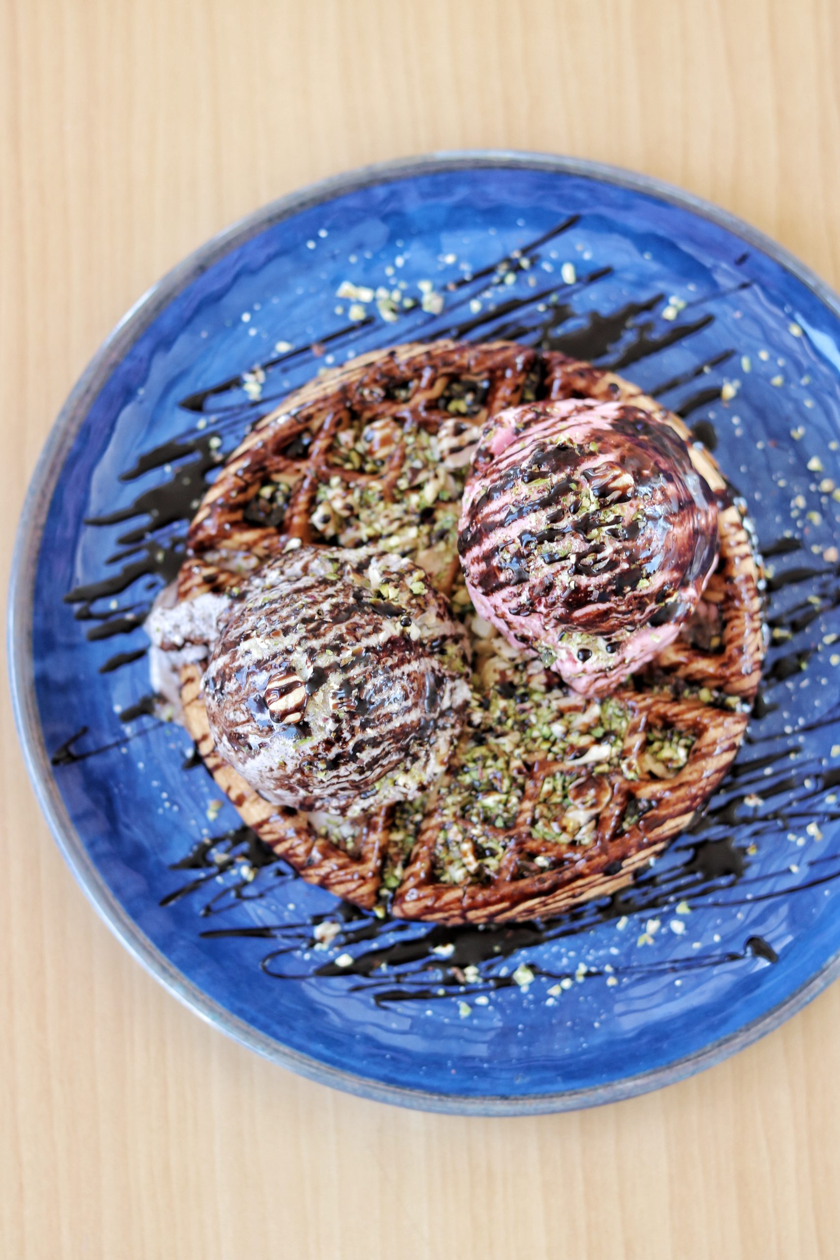 Overlooking the marina, the restaurant extends to an outdoor wooden deck offering lovely water views and don’t even get me started on the massive amount of photo ops available at this totally instaworthy location. We tried a bunch of different flavors, most of which were prepared with frozen nitrogen, and I loved how they had so many waffle cones and cups to choose from. The green chili and paan ice cream (in a red velvet cone) were my favorites. The guac styled avocado ice cream topped with raspeberry salsa is worth a try, especially for avocado lovers. And for those who like the classic stuff, you can go in for a creamy saffron pistachio (in a charcoal cup) or a fresh waffle topped with your favorite scoops.