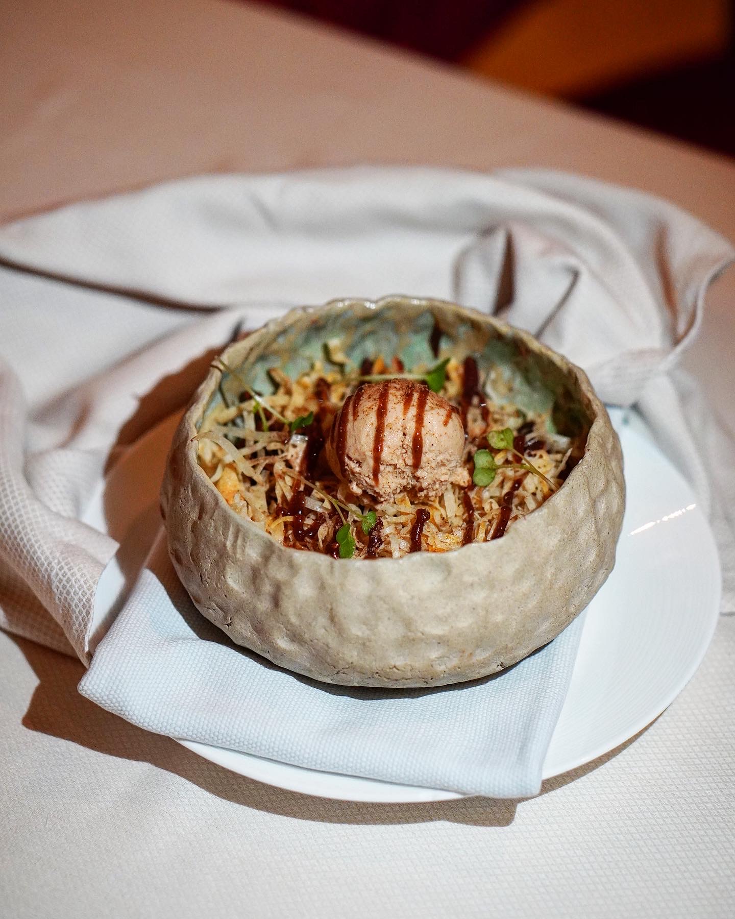 For desserts, we tried the Carrot Carat, a unique carrot based dessert featuring different version of this super veggie – in the form of gajar halwa, carrot kulfi, carrot cream and carrot sponge cake. Chocomosa, as the name suggests was a petite samosa filled with chocolate, served over chocolate soil and paired with banana ice cream on the side.