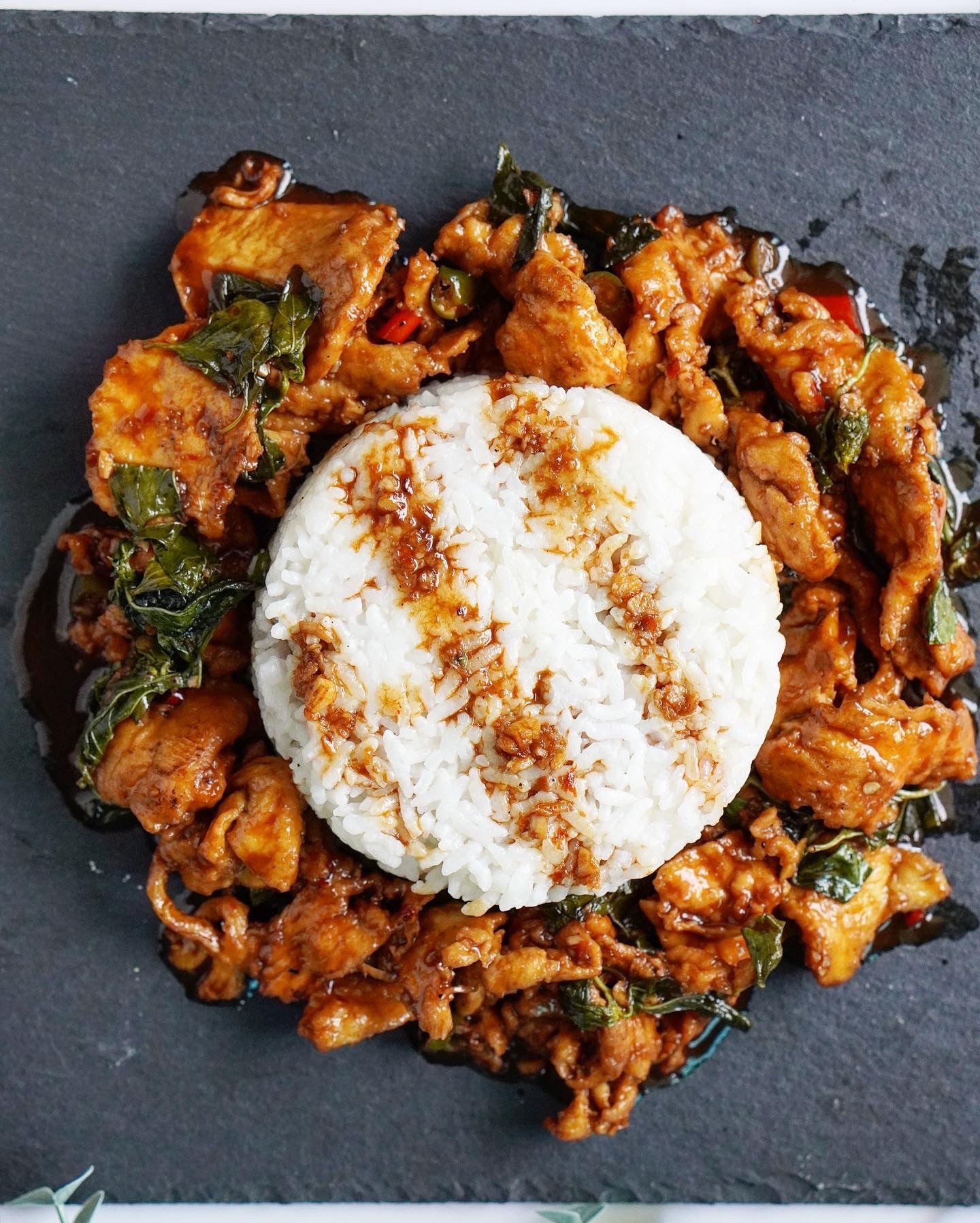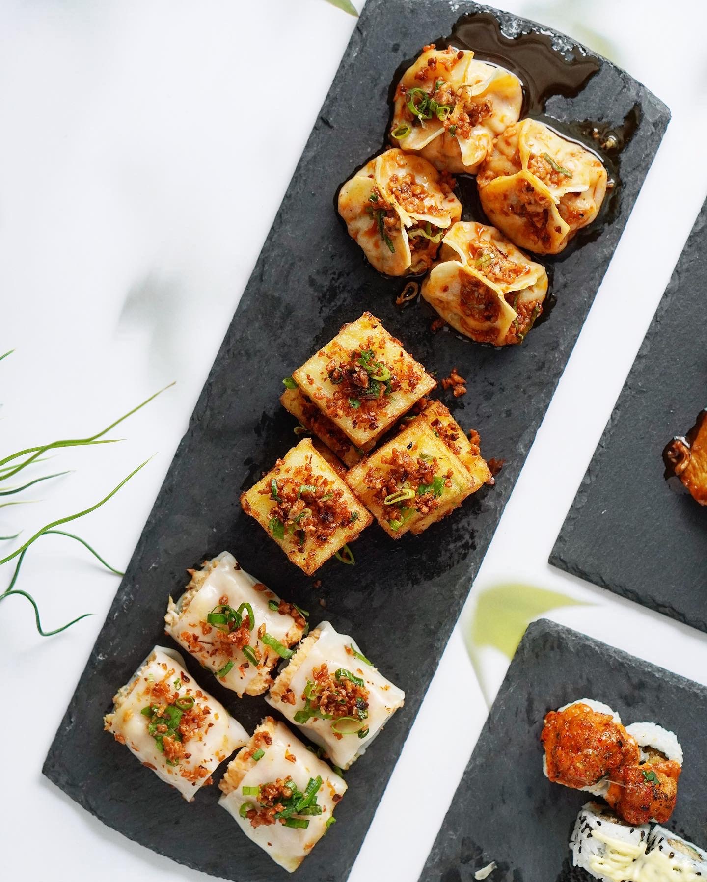 I especially loved the sushi variety they sent across – one with rock shrimp and the other with enoki tempura. The chicken dimsums were beautifully done and the basil chicken with rice was such a treat.